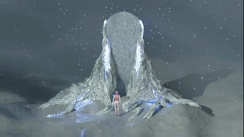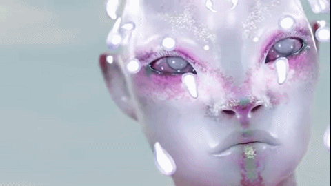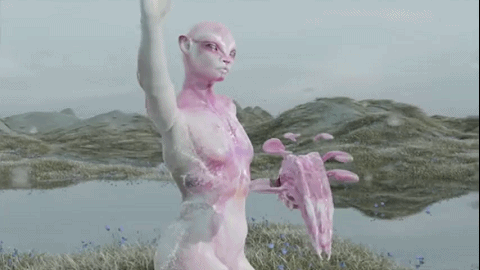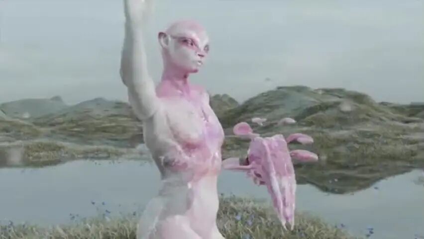 展览中的不明流体其他动作衔接自然,既不机械化又不僵硬。当发光器官从粉红色的头部长出,环境变成了逼真的山脉和荧光奇幻植物的混合体,看起来梦幻又人性化。