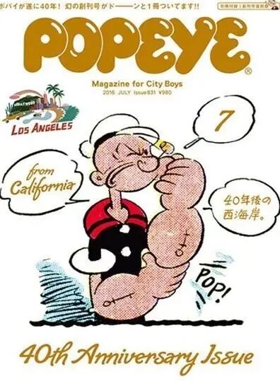 而在时隔四十年之后的7月刊上,《POPEYE》不仅在别册附上了创刊号的复刻版,同时还对曾经封面上的大力水手的历史进行了一系列详尽的解说。
