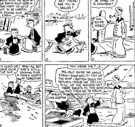 有心栽花花不开,没想到读者们全部的吸引力,一下便被这个身材瘦小,一身水手打扮的角色所吸引,并纷纷写信要求作者E·C·西格继续让这个角色出现在后续漫画中。