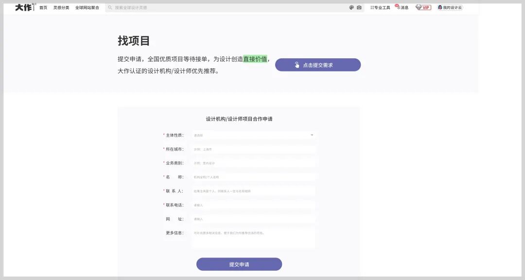 大作设计师认证与项目采集简洁高效,必要信息一项不缺,繁杂流程能减必减。