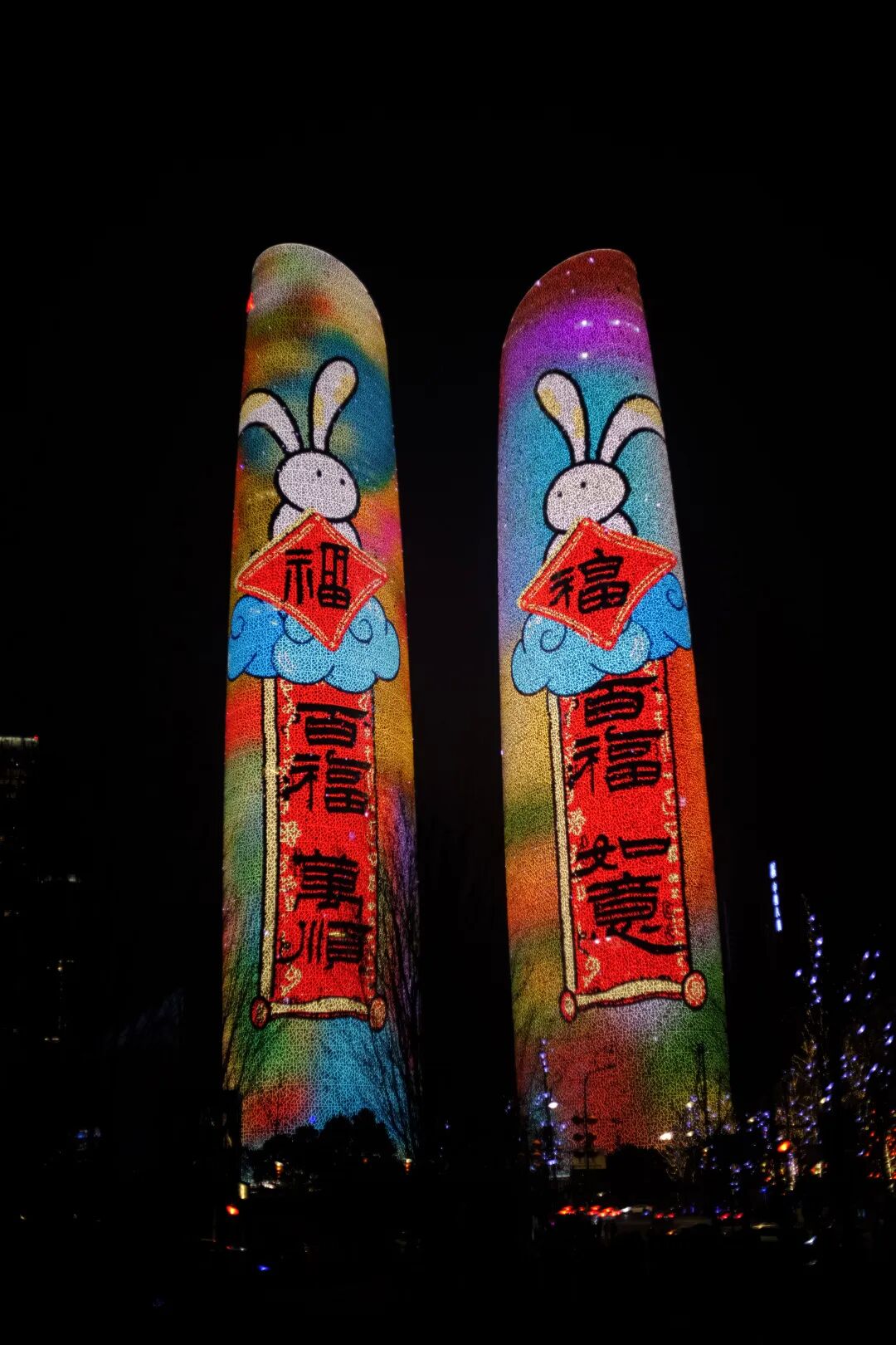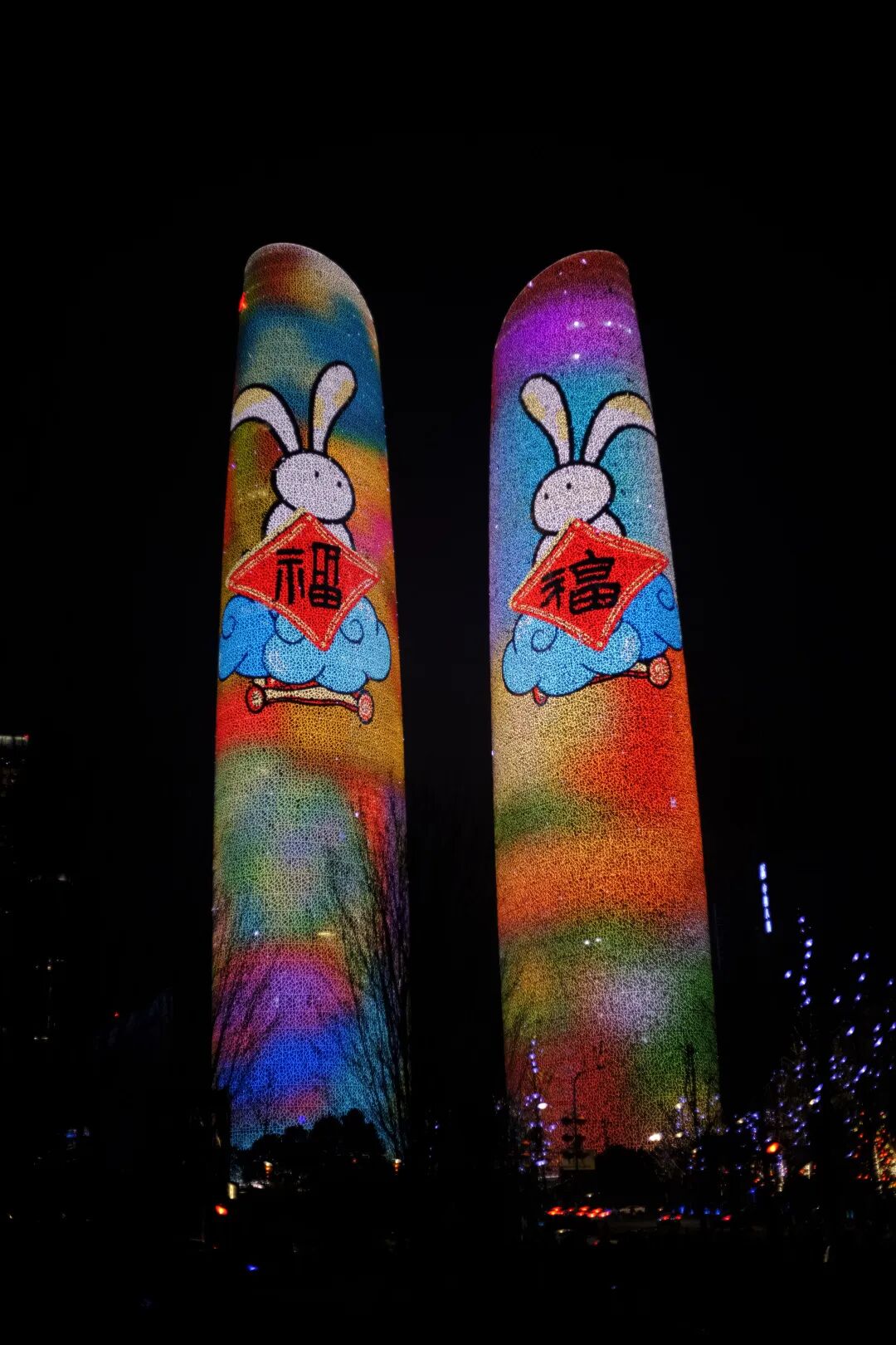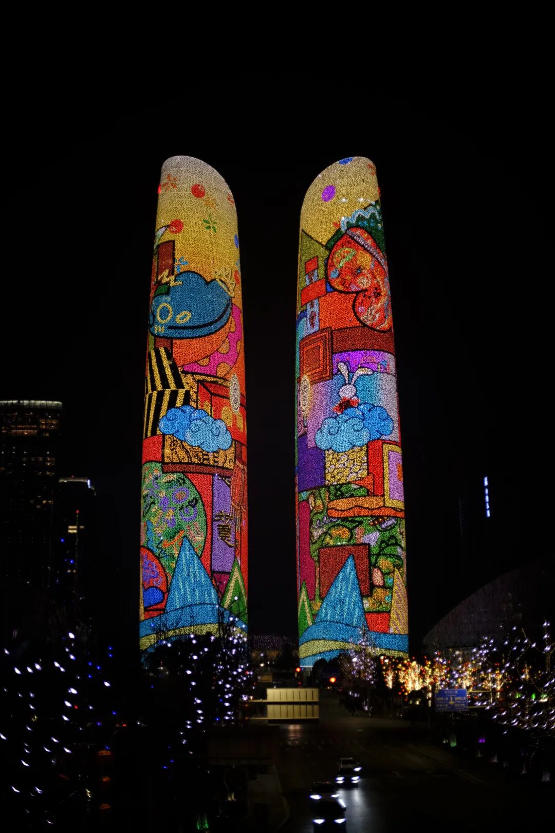 简单的几何搭配跳跃的颜色,结合天府双塔本身的曲面造型让色块包裹塔身,天府双塔提供给创作者充分的表达空间,让艺术表现形式更多元。费老先生的大力支持,让艺术爱好者有信心敢想敢做敢尝试。