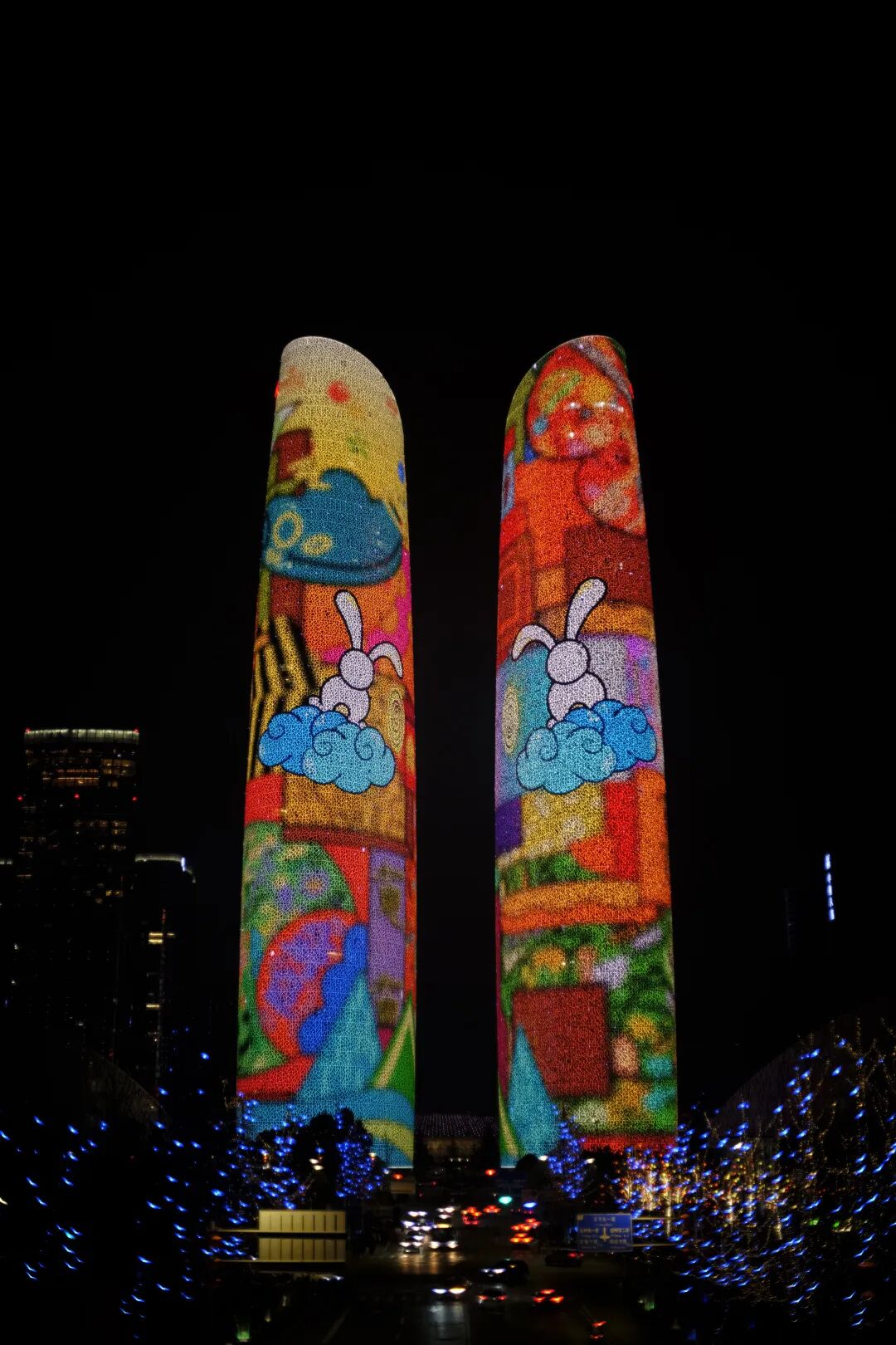 但是,这个作品起点或者说艾利克斯的创作初衷,也许是从期望助推更多艺术爱好者参与城市文化繁荣开始。天府双塔作为成都国际城南最出圈的视觉地标以及城市形象对外输出的重要窗口之一,在城市文化表达上占据重要席位。而首次“大众艺术家上塔”的艺术行为在新年第一天落地,无疑对于艺术工作者来说是一次鼓舞,它有力地模糊着艺术创作的门槛边界,只要喜欢,就去画;它有力地膨胀着一座城市艺术建设的参与度,只要你想,就去画;它有力地打开普罗大众的眼睛,让更多喜爱创作的艺术工作者被看到。