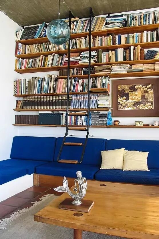 ▲ 给顶天书架安排上梯子。