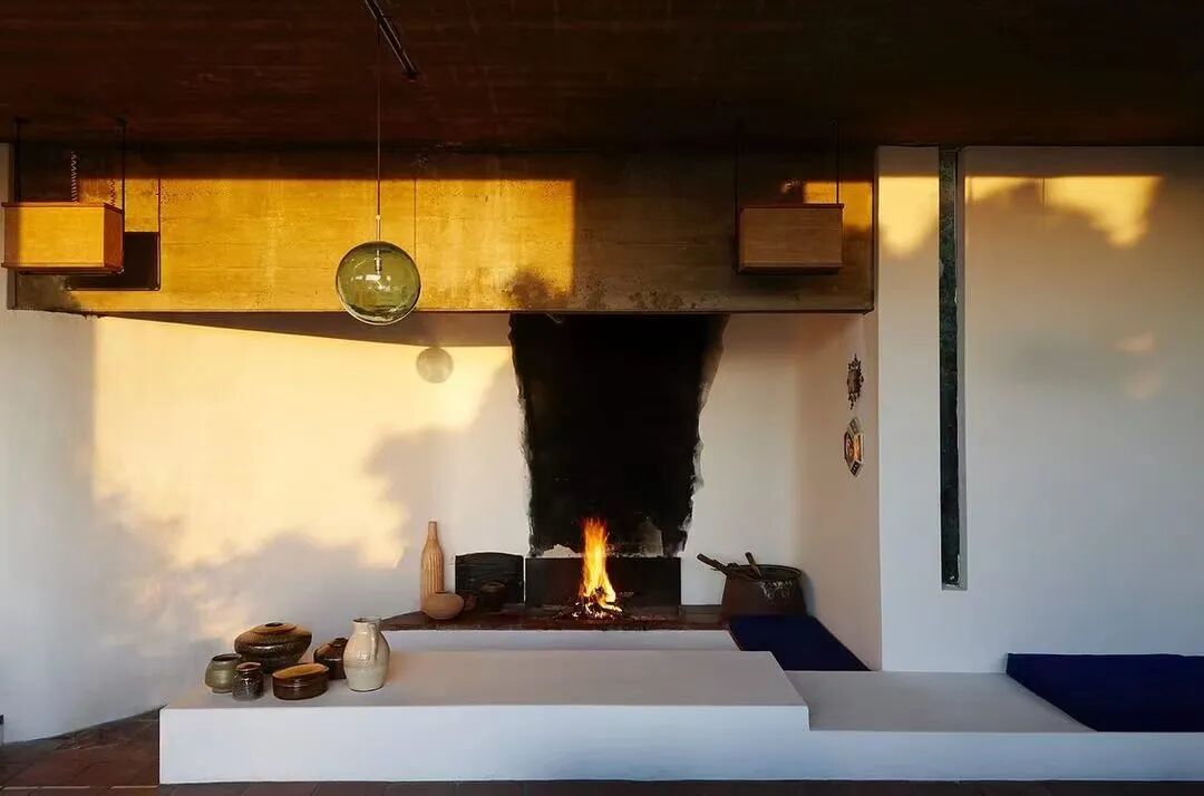 ▲ 在黄昏的阳光里燃起火的壁炉。