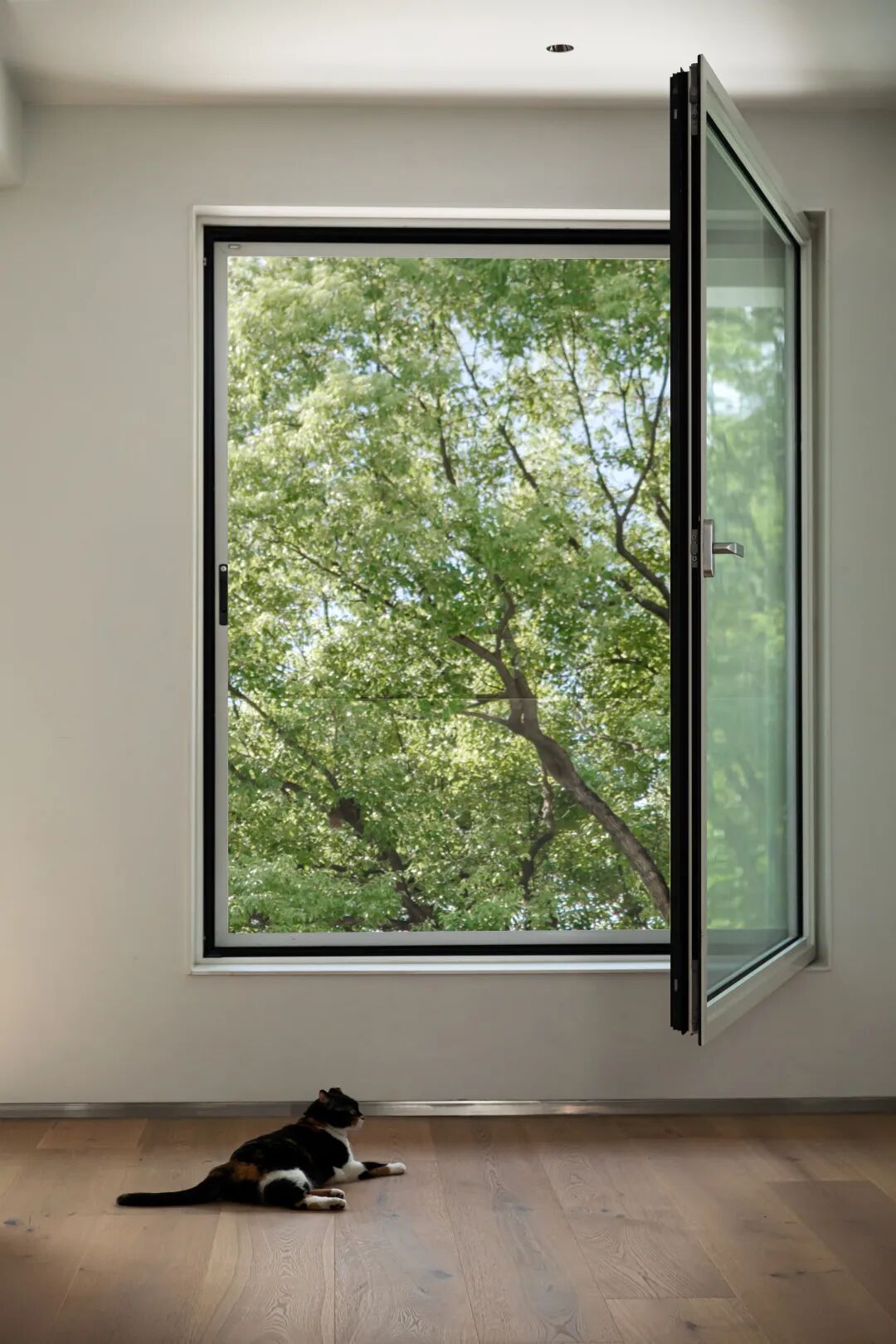超大的开扇窗是实施上的难点,对于材料、施工工艺都有着较高的要求。而这些都是为了让自然最大限度的进入室内,人可以随意地靠近窗户,坐下休息。