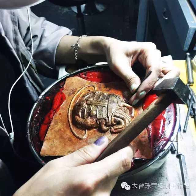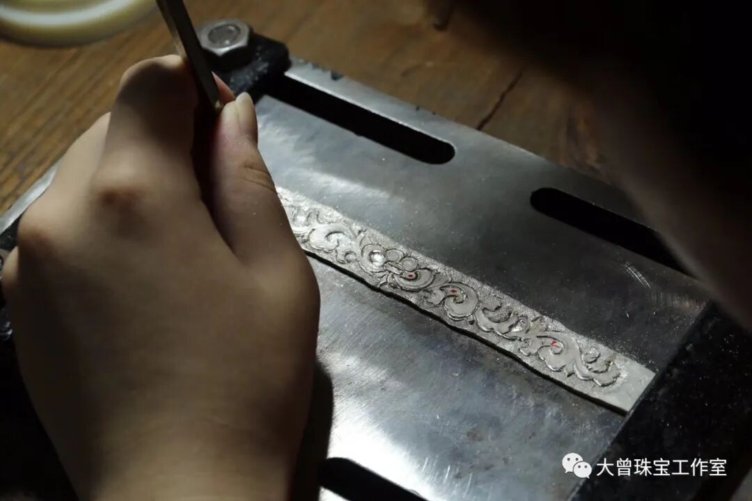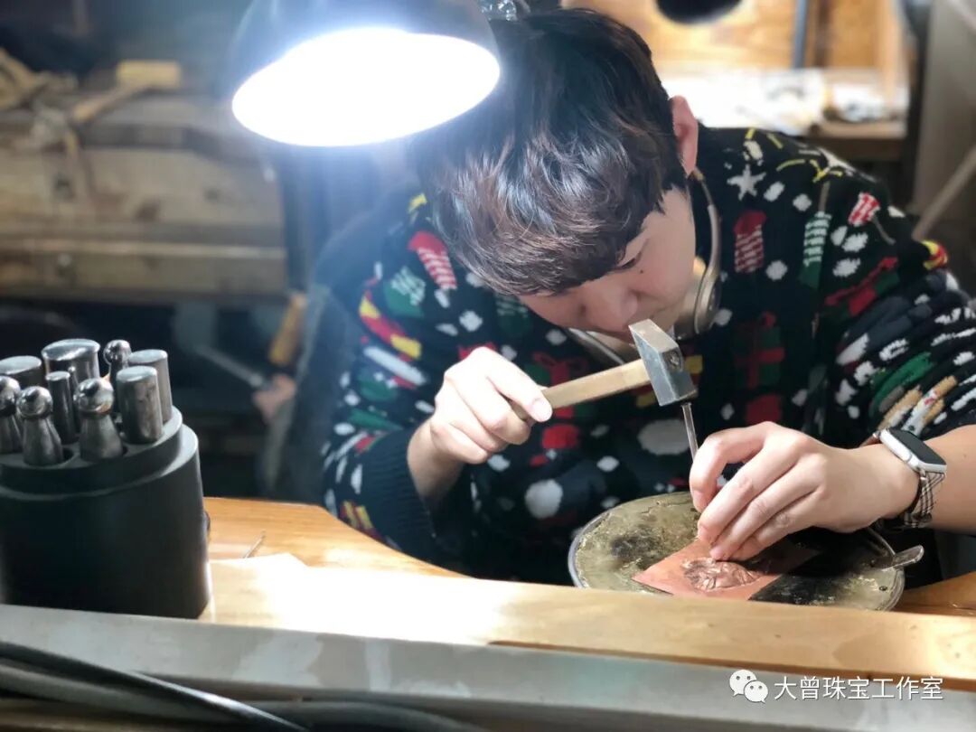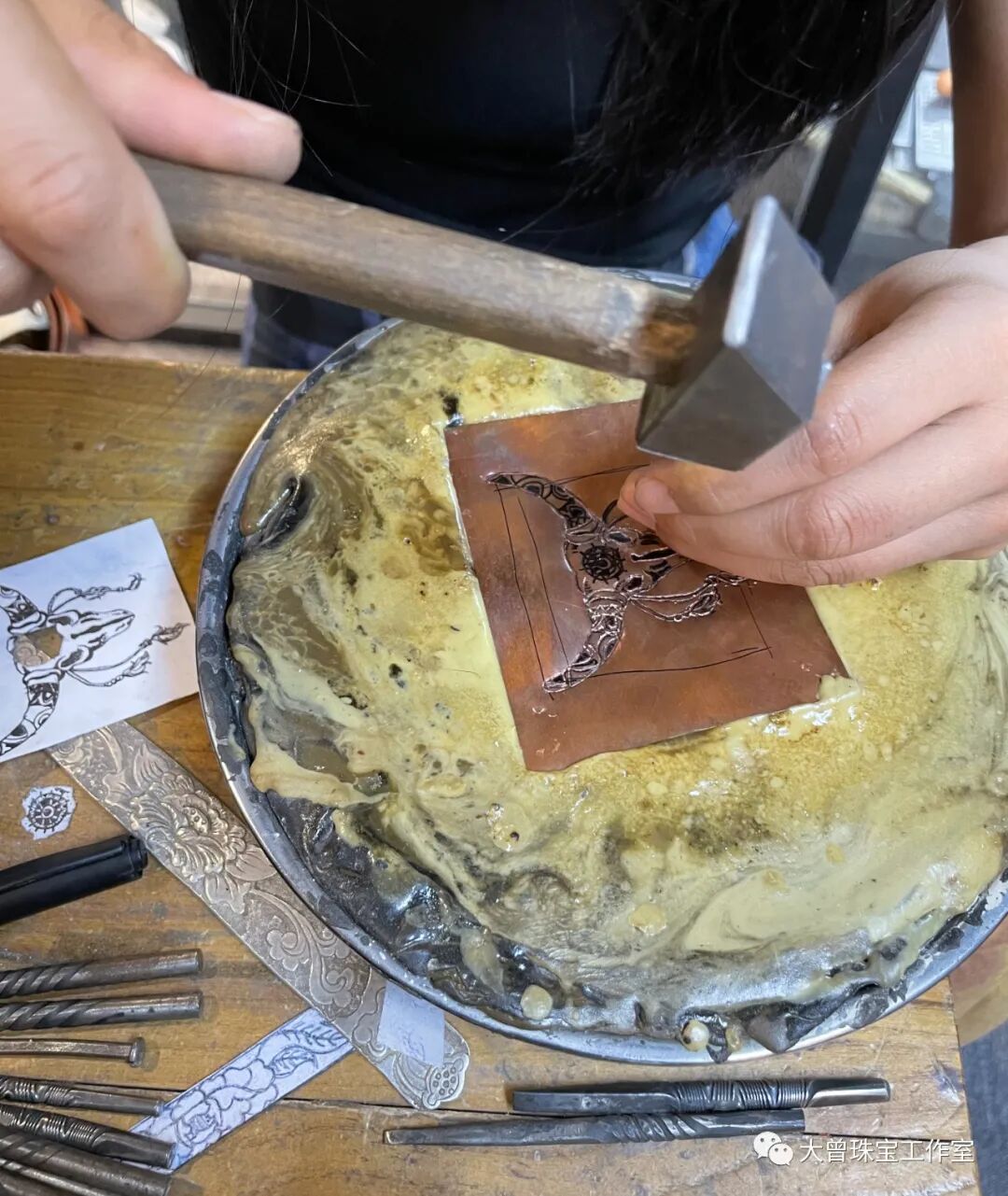 錾刻是一门古老的技艺,它利用金属的延展性将生动的图案“绘制”在金、银、铜等金属的表面。錾刻不仅可以用来装饰器皿的表面,也可以记录神话传说或者历史事件。在当今的生活中錾刻的应用已经不多,有时能在珠宝饰品上见到錾刻的踪影。但是我们不一定非到博物馆中去欣赏錾刻,我们可以学习自己这门技术,并亲手制作带有自己祝福的珠宝饰品,当然题材可也可天马行空,谁说纹样一定要传统呢?大曾珠宝工作室錾刻工艺课程带你领略传统工艺的魅力,与你一起创造錾刻的新篇章。