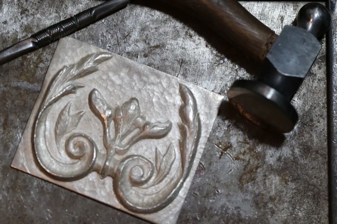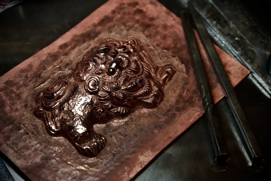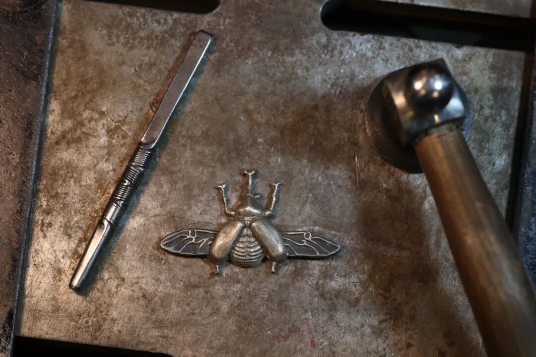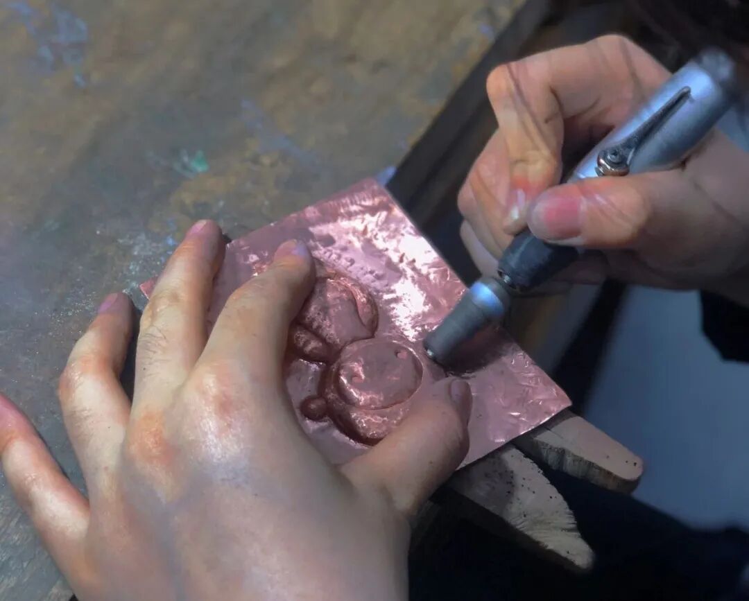 錾刻是一门古老的技艺,它利用金属的延展性将生动的图案“绘制”在金、银、铜等金属的表面。錾刻不仅可以用来装饰器皿的表面,也可以记录神话传说或者历史事件。在当今的生活中錾刻的应用已经不多,有时能在珠宝饰品上见到錾刻的踪影。但是我们不一定非到博物馆中去欣赏錾刻,我们可以学习自己这门技术,并亲手制作带有自己祝福的珠宝饰品,当然题材可也可天马行空,谁说纹样一定要传统呢?大曾珠宝工作室錾刻工艺课程带你领略传统工艺的魅力,与你一起创造錾刻的新篇章。