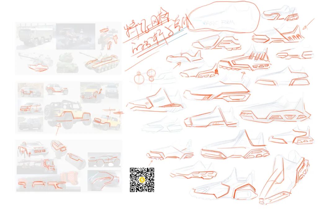当然在速写这一步是我们理解形态的过程,虽然不用做到100%还原,但是我们尽量避免去改变重大的形式和形态,因为这样才能避免我们后续所设计的形态和意向图的本质有特别大的差别,毕竟这是我们树立和抓取信息的重要一步。
