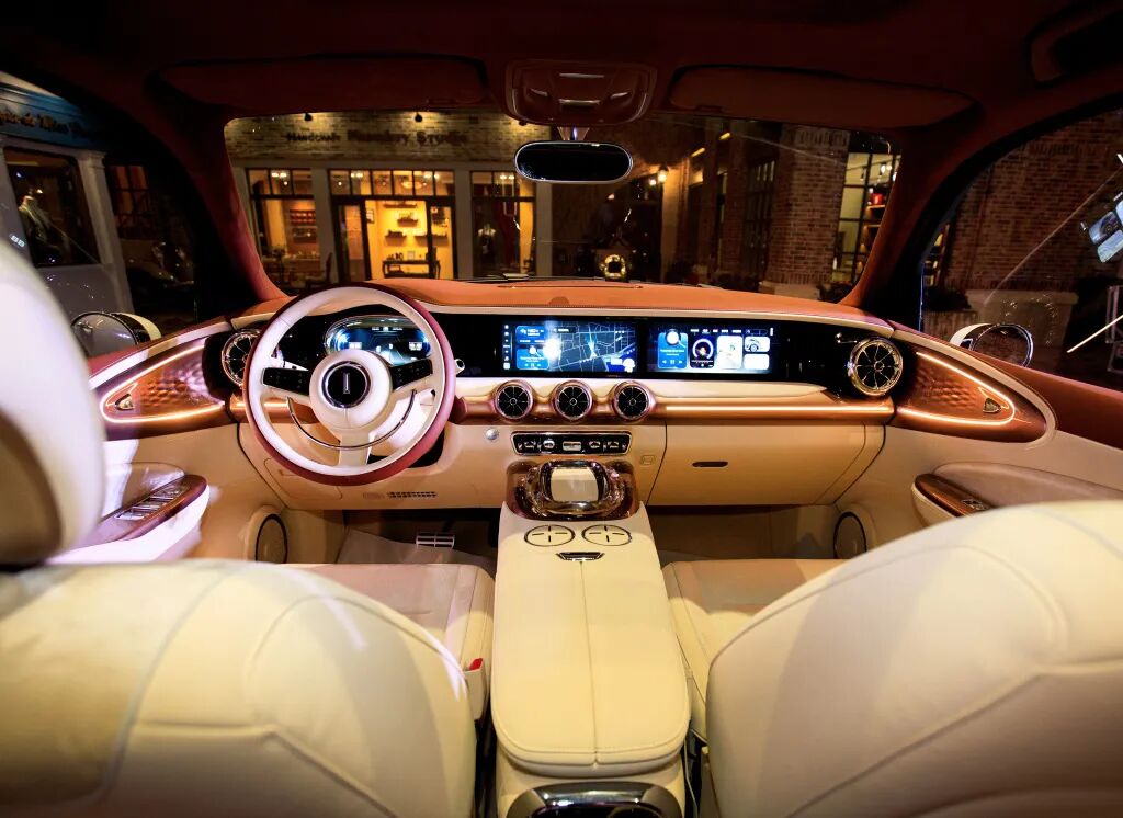 与外观力求复古不同,新车内饰则极具现代感,全液晶仪表盘搭配具有复古样式的触摸式双辐多功能方向盘,中控部分以及副驾驶前方都使用了大尺寸的触摸显示屏,再配上环抱式座舱设计,使整车做到了新旧结合;