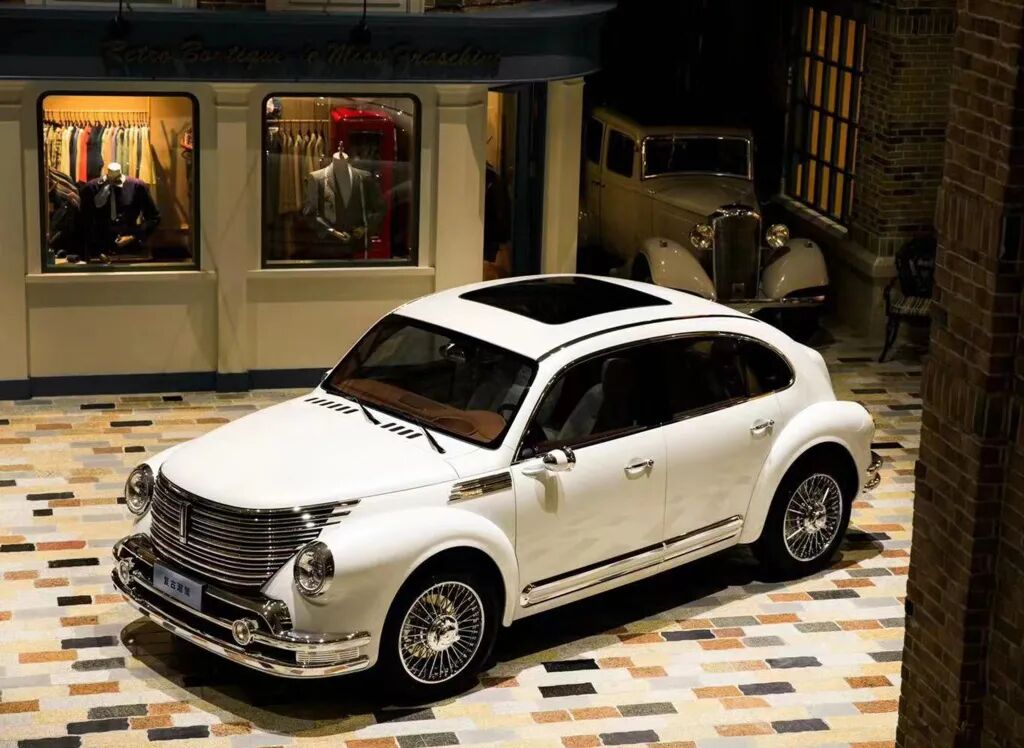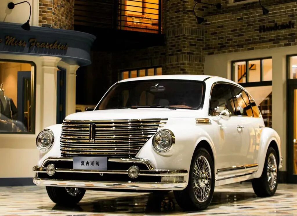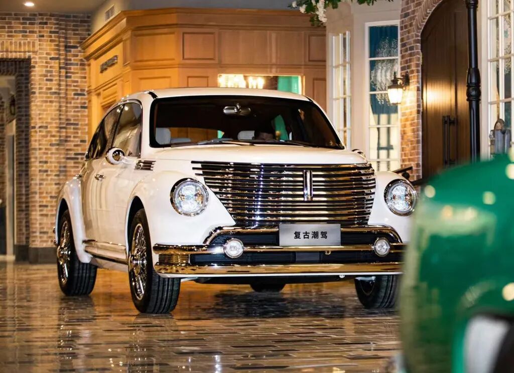 而在车辆侧面,除了较为平直的前机盖外,车门下方的贯穿式镀铬条装饰也是点睛之笔,让整车看起来没有那么单调的同时,也让复古元素更加浓郁了几分;