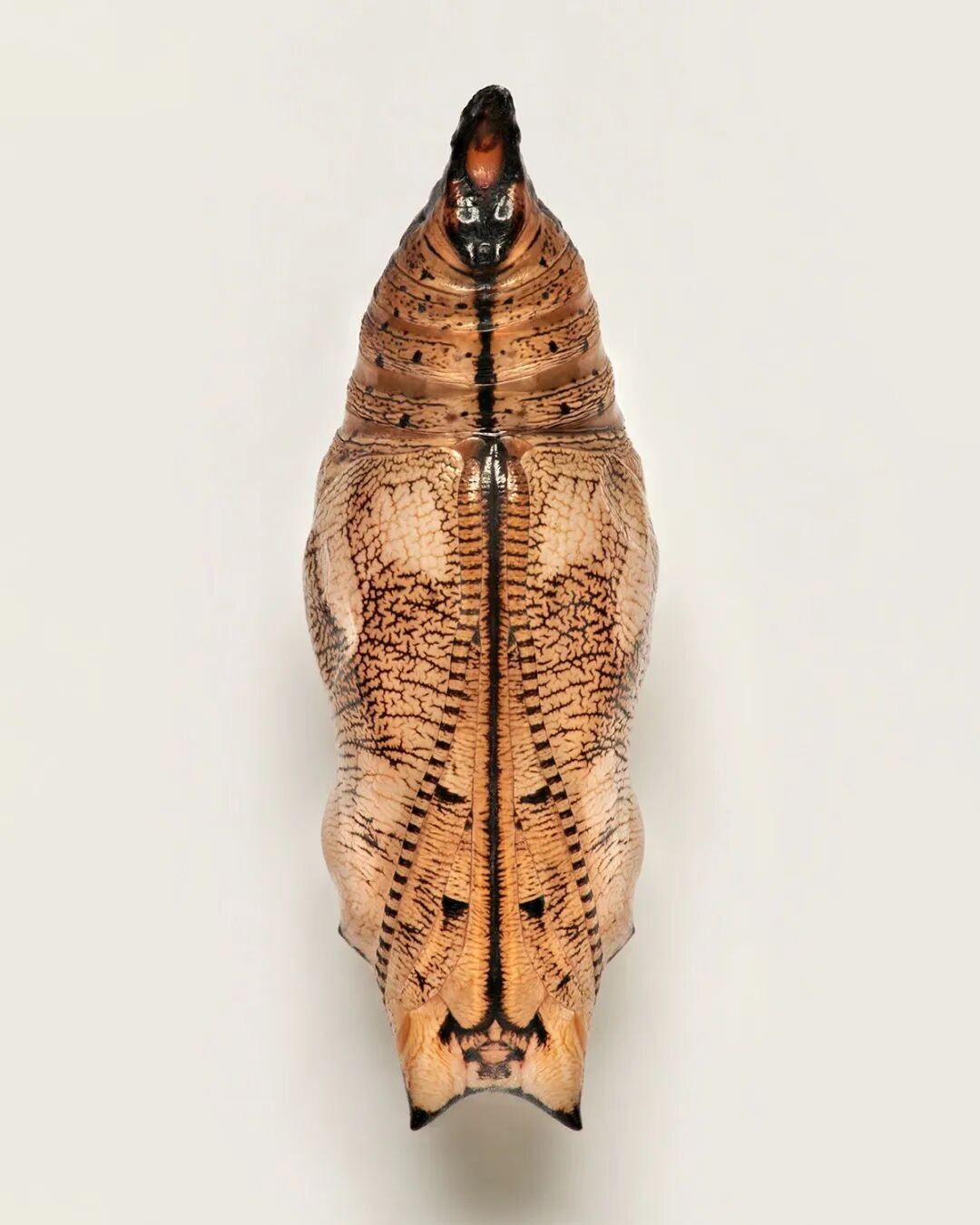 接下来,就让我们一起来欣赏一下这位微距摄影师,给我们带来以蝴蝶蛹为主题,拍摄的系列作品吧,相信即使是不喜欢昆虫的人,也会喜欢上这些变化万千的蝴蝶蛹。