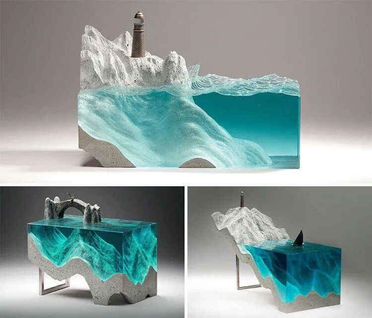 将大海与单品合二为一的海洋雕塑可以说是人间尤物也不为过。艺术家Ben Young(本▪杨)以2D图画为基础,用形成图案的手工玻璃层层组装堆叠,放置在用混凝土制成的海洋底部模型上,形成独特的海洋奇景。