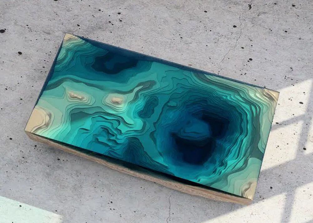 设计师Greg Klassen(格雷格▪克拉森)以西北太平洋地区周边环境的影响,利用废旧的木材与玻璃进行拼接组合形成,模拟当地生活水域环境的桌子,家具单品不仅用材环保,设计出来的桌子也是独一无二,每一张桌子都是一件艺术品,且模拟出来的水域形状各不相同。