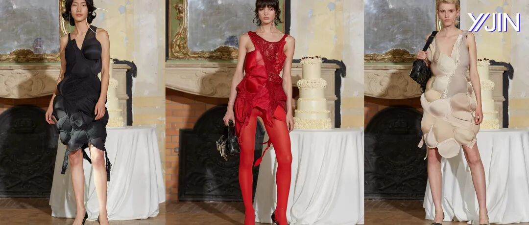 用400个蛋壳碎片制作成衣服,将辣椒串成裙子......新系列将数量繁多的碎片装点在衣服上,把森林或厨房里的东西诠释成衣服,让人感觉既超现实又舒适。