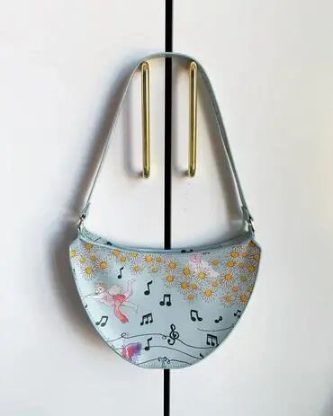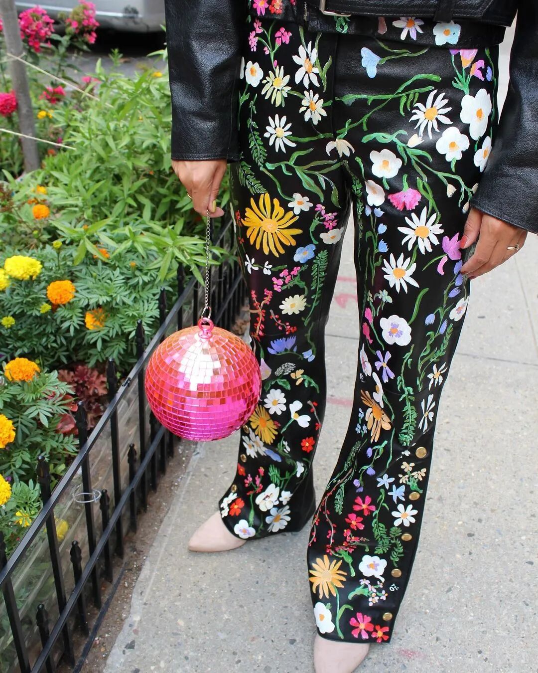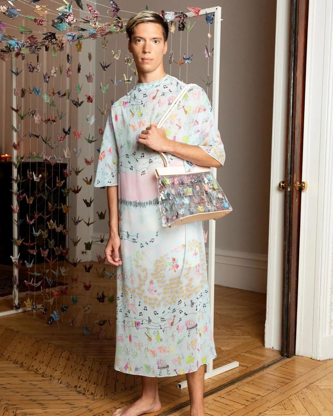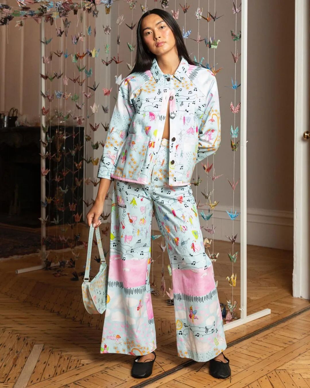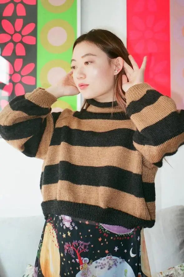 她回收再造vintage旧衣,使用押花、手绘技艺,使旧衣有了全新面貌。此外她本人十分强调环保,她制作的全息连衣裙是由100%再生聚酯制成的,她说自己的目标是“制作地球上最快乐的衣服”——把新鲜的鲜花、水果做成饰品或者设计在衣服上,环保生动,复古有趣。