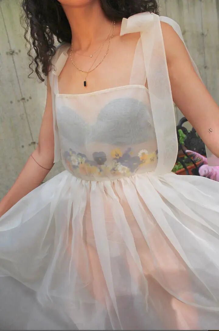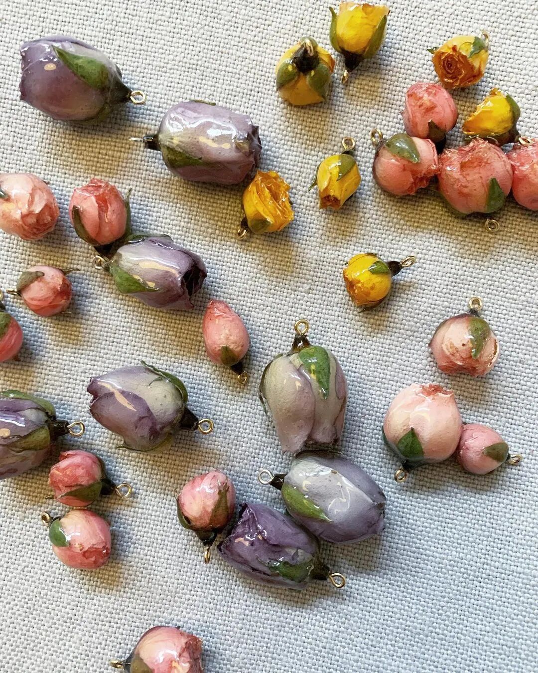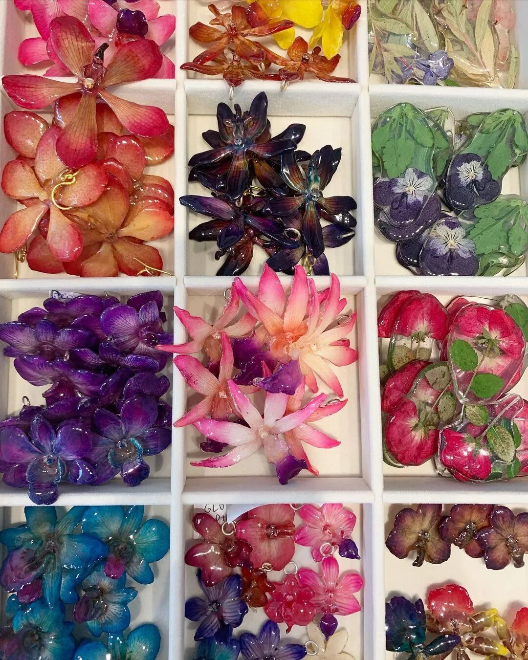 Olivia Cheng所设计的服装都与植物花卉有关,取材花卉、草叶、昆虫、水果切片等,使用特有的工艺技术保存,再注入树脂,保存了这些物件鲜艳美好的色彩与质感,比干燥花或一般蝴蝶标本更加鲜活与立体。