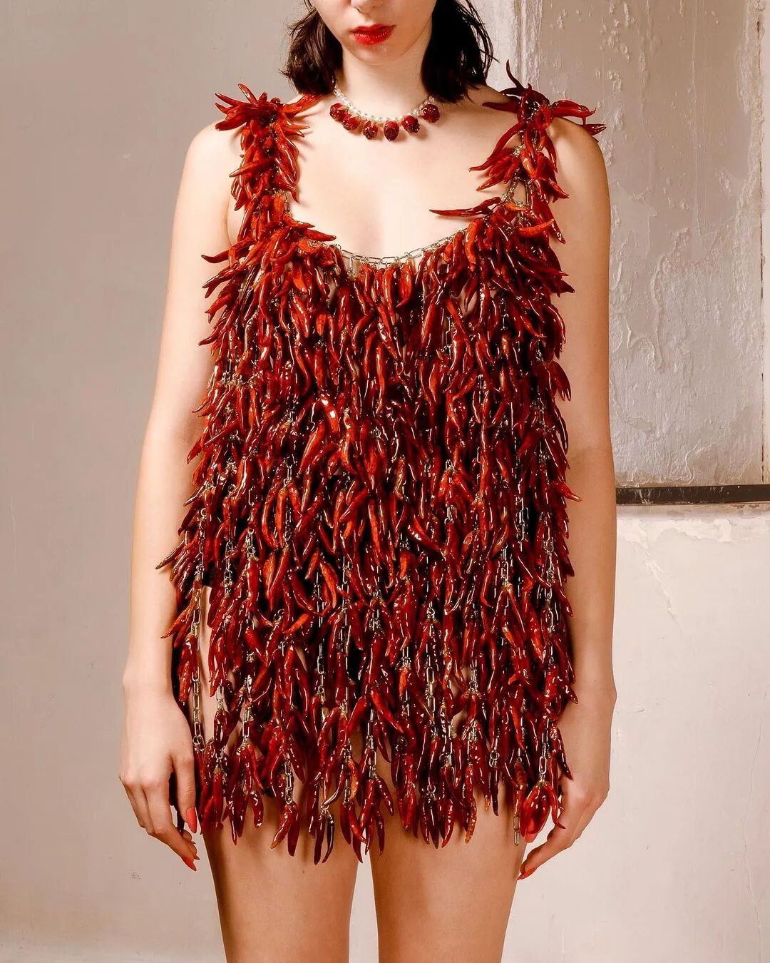 用植物做衣服,还把辣椒挂在身上?勺子、盘子都穿在身上,还有什么是Dauphinette不敢做的?!