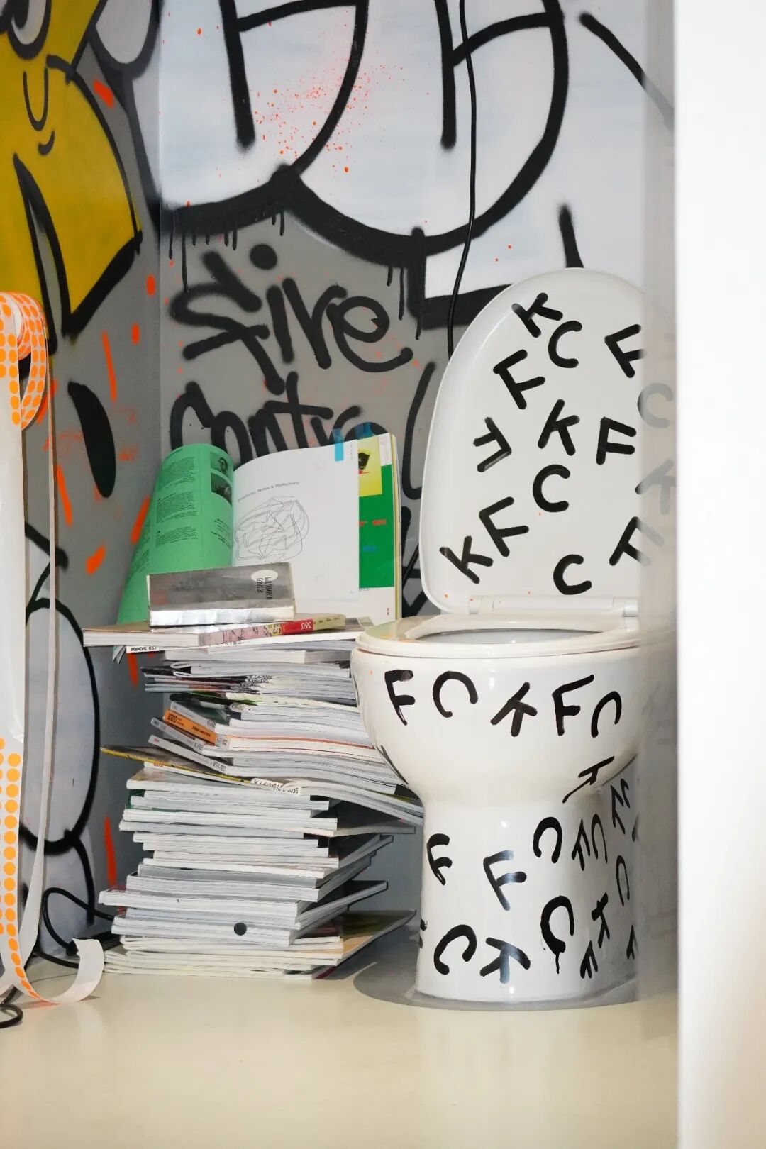 这是全场的一个“彩蛋”,《杂志,就这样》结合现场装置,搭建了一个“杂厕所志”的小型空间场景,邀请自由插画艺术家FCCK在现场创作了涂鸦作品,让“杂厕所志”传递出一种态度,为参观者带来了颇具当代艺术效果的视觉和知觉体验,让展览本身显得妙趣横生,富于玩味。
