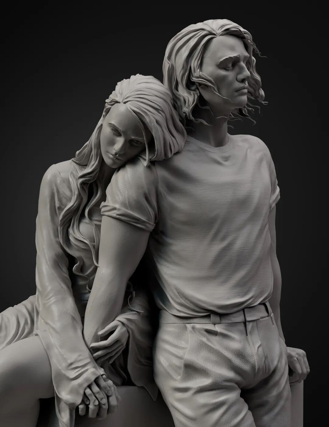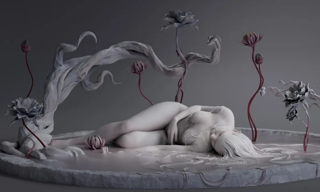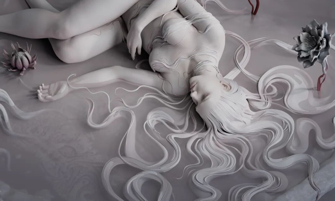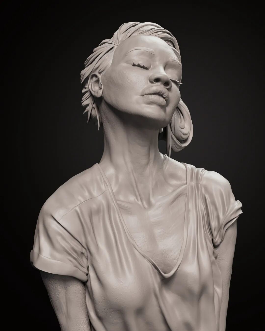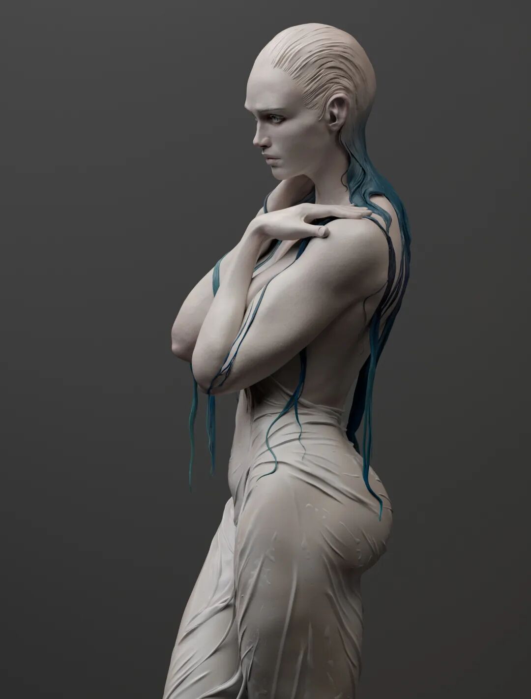 Alexey Borkovskiy对于人物身体轮廓细节的刻画非常细腻,就比如下面这幅收获了3K+点赞的作品《Nereid》,他对于布料细节的塑造简直令人惊叹,极富艺术感染力,柔软的肉感和紧贴的薄纱质感不禁让人想起了雕塑大师Antonio Corradini的作品。