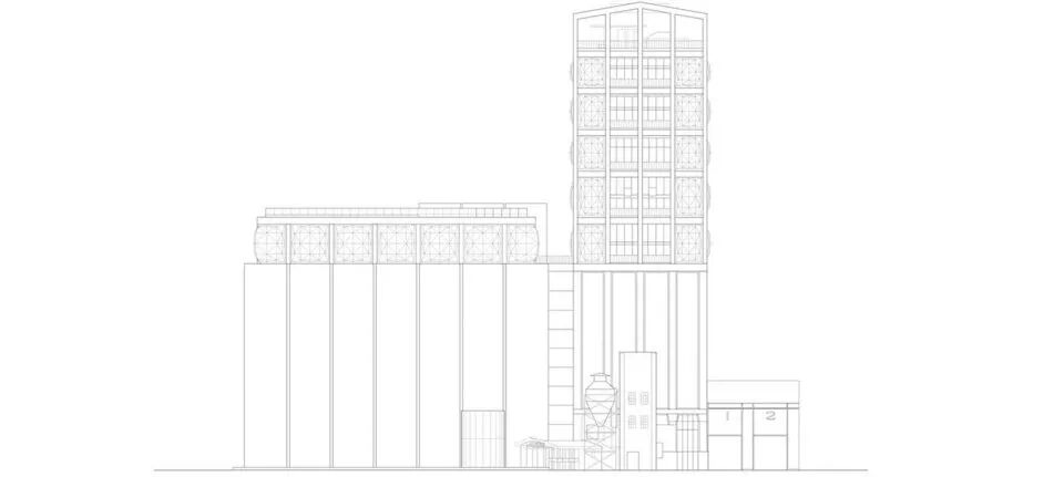 这座形态看似单一的混凝土建筑由一栋楼层分明的塔楼,以及42个蜂窝状的高大筒仓两部分组成。