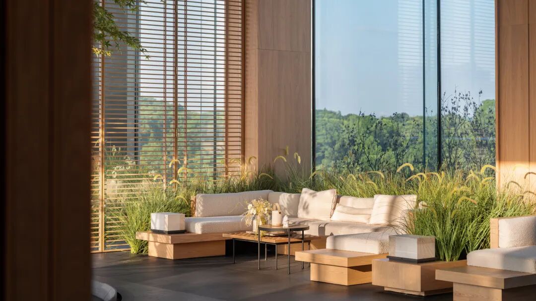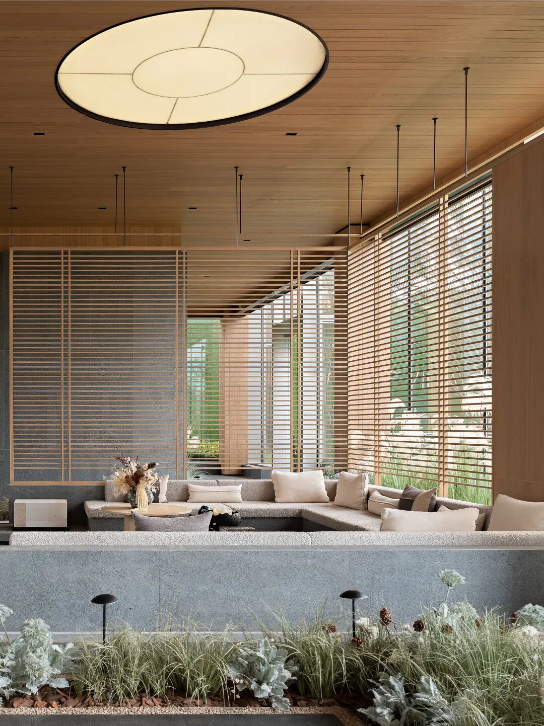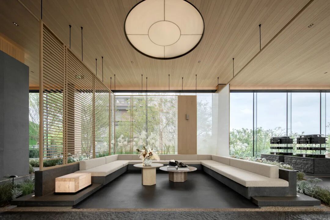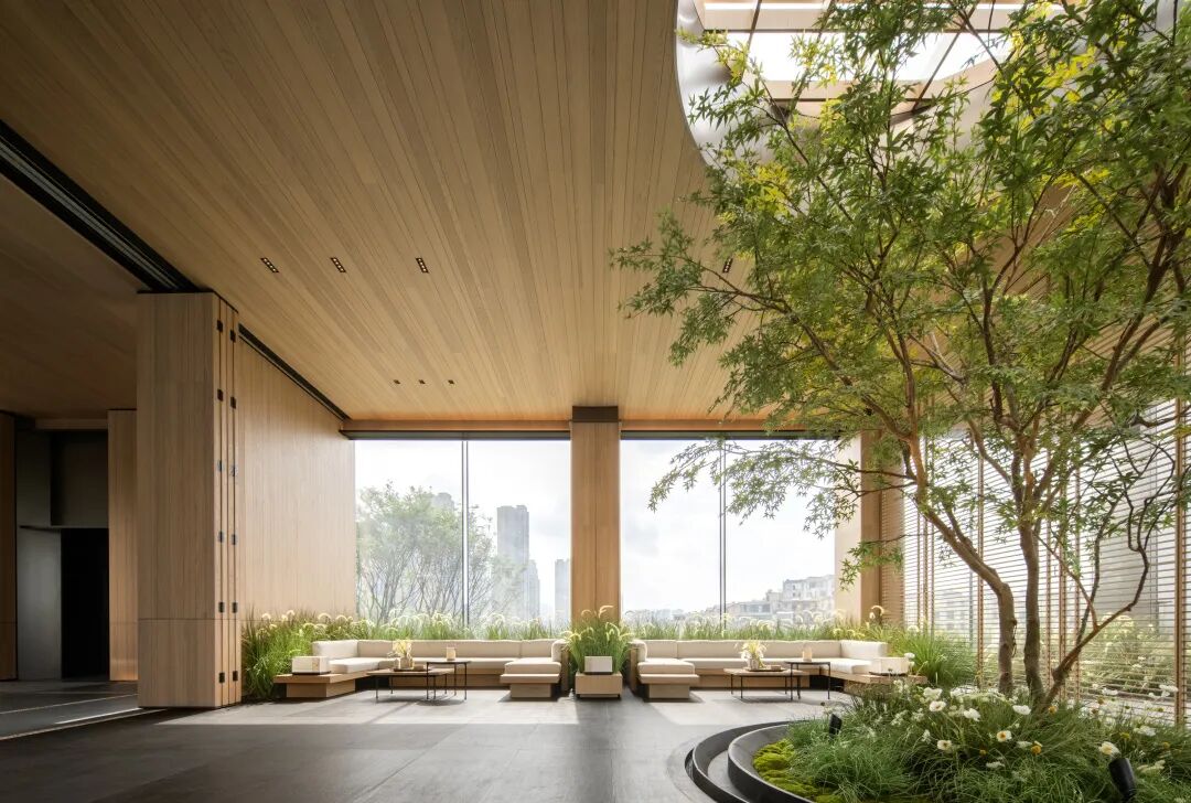 与后疫情时代的生活相遇,寻觅「回归宁静、亲近自然」的理想,院落化观景的融入,创造与自然0距离的接触,为居者送呈清嗅花香、感触自然的度假场所。则灵通过让自然与室内无界交融、共存、共生长,以春发、夏盛、秋实、冬藏营造循序渐进的空间情绪,构建自然、休闲、度假、放松的都市生活社群。