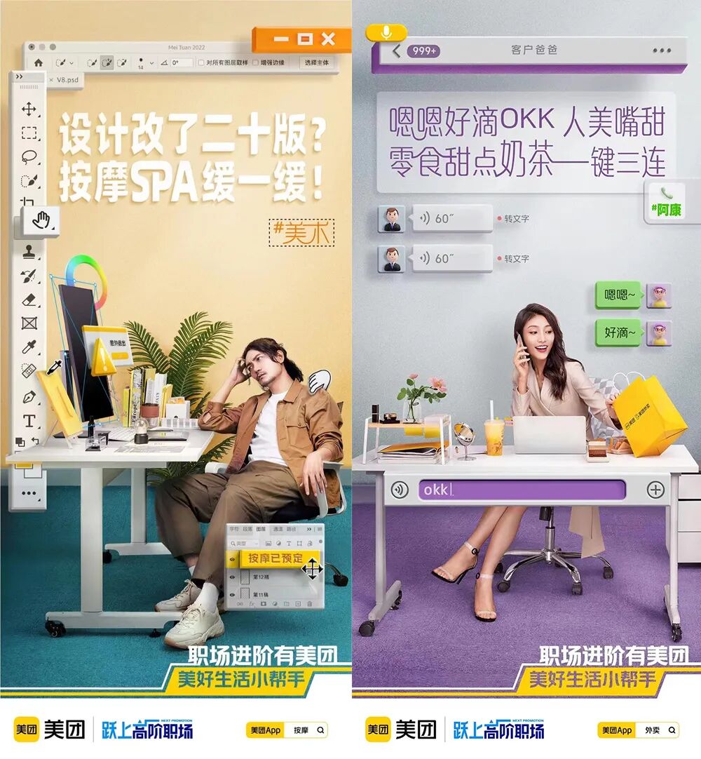 比如在上图的两张海报中,图二在图一的基础上做了图片美化、网格规范排版、色彩优化等细节调整,视觉上也更美观了,甚至也更符合市场需求了。