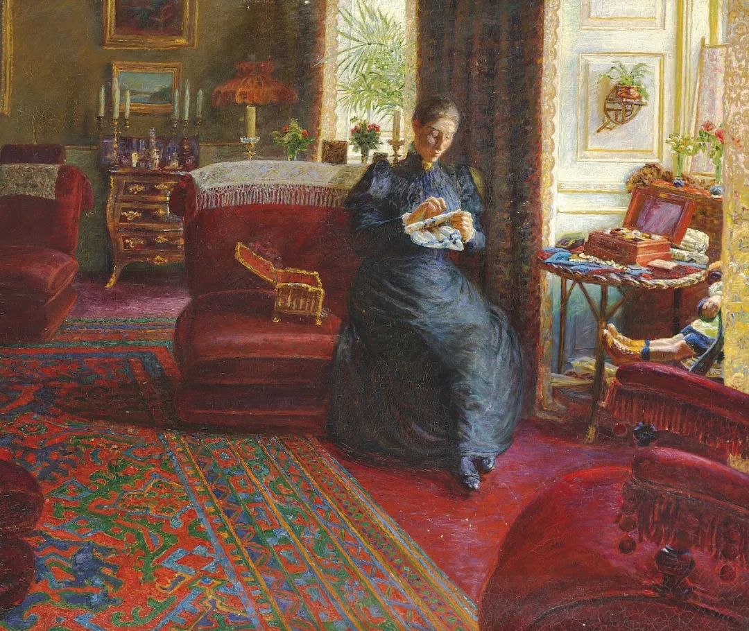 Kristian Zahrtmann(1843-1917),丹麦画家。他与佩德-塞弗林-克洛耶(Peder Severin Krøyer)和西奥多-埃斯伯恩-菲利普森(Theodor Esbern Philipsen)一样,都是19世纪末丹麦艺术界的一员,他们摆脱了传统学院派的束缚和丹麦绘画黄金时代的遗产,倾向于自然主义和现实主义。