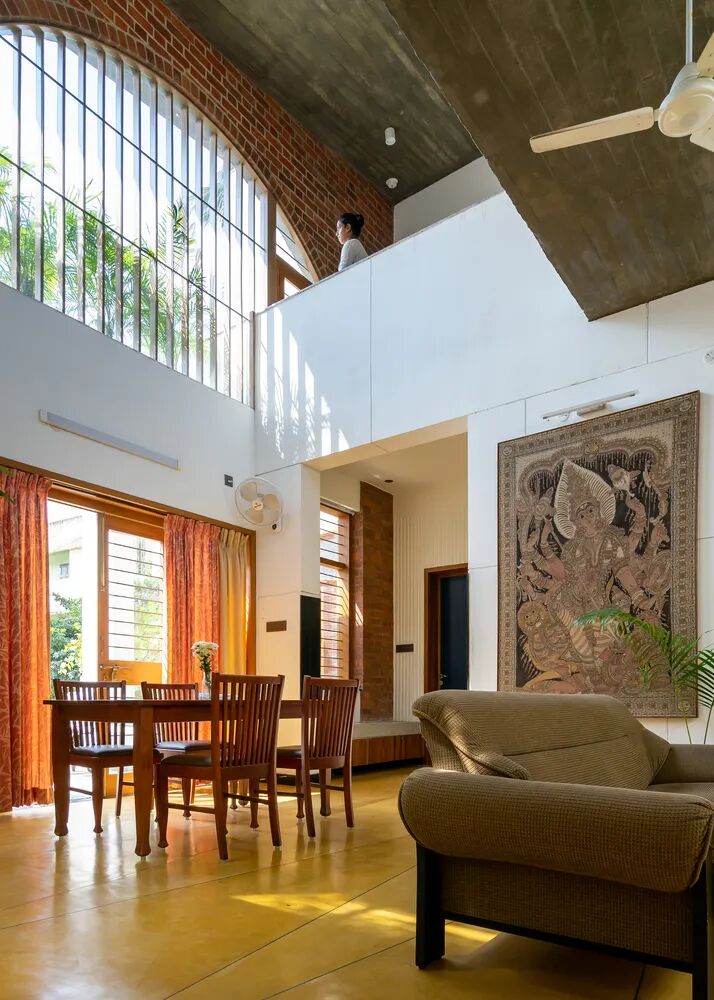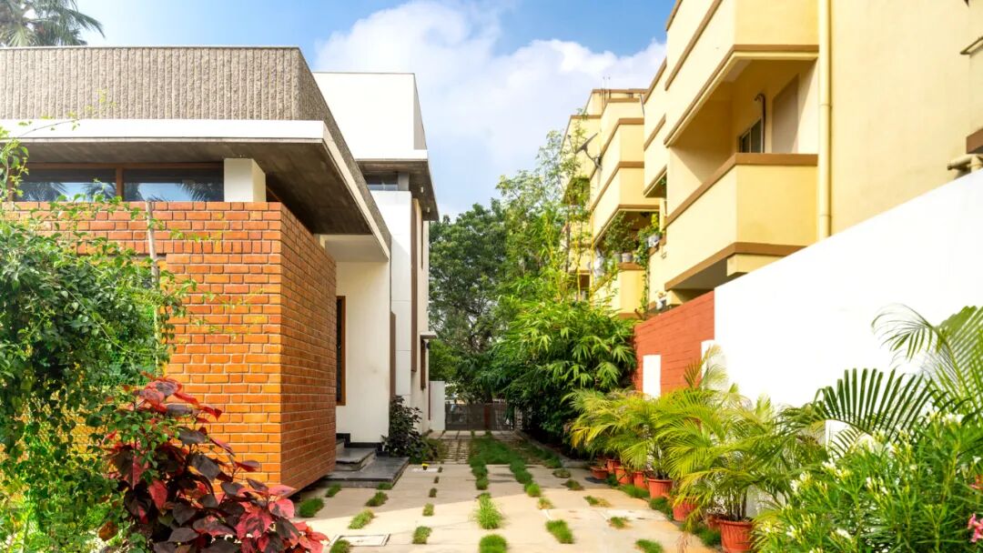 这座住宅旨在庆祝家庭对土地和农业遗产的热爱,位于印度Chennai住宅区中。在这里,经历城市扩张和农田范围变成商业地块的社区对居民的生活方式发生了重大变化。