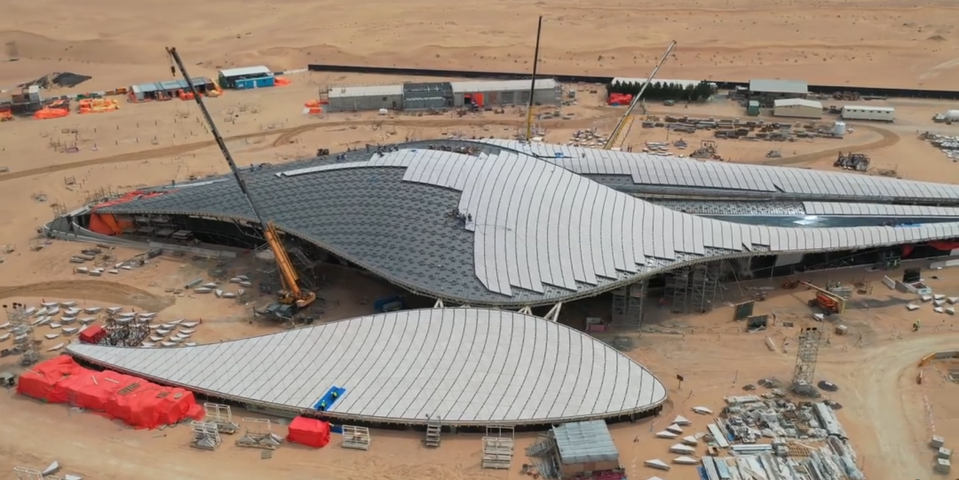 建筑占地 9,000 平方米,从周围的沙漠景观中汲取灵感,造型呈现沙丘的形态。