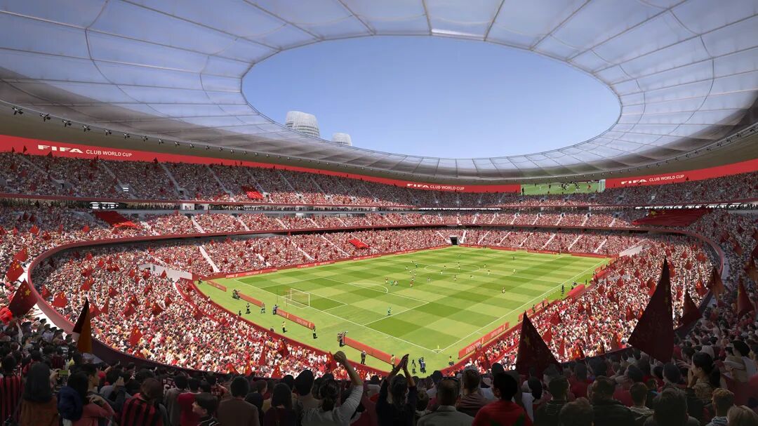 中心内最大的场地,13.5万平方米的足球场位于新公园的东侧,面向城市。体育场西侧和南侧分别是室内竞技场和水上运动中心,它们通过贯穿整个场地的分层裙楼与体育场相连。