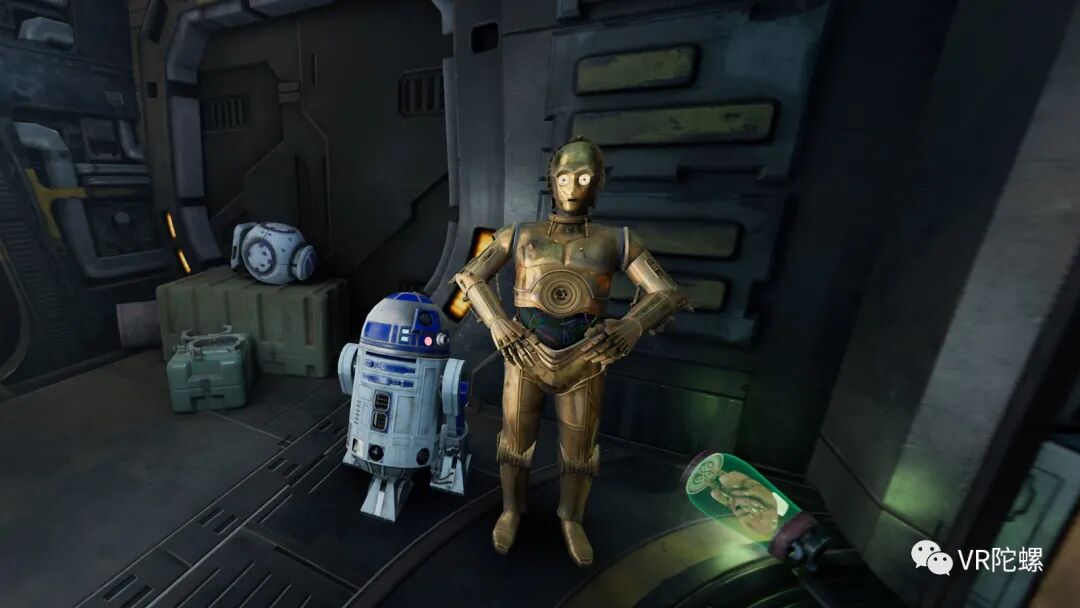 某些故事还可以遇见如R2D2、C-3PO和尤达大师等标志性角色。其他像是中央酒吧和一系列的角色,都有助于构建类似现实的迪士尼乐园中“星球大战 银河边缘”园区的体验。这就是虚拟现实的厉害之处!
