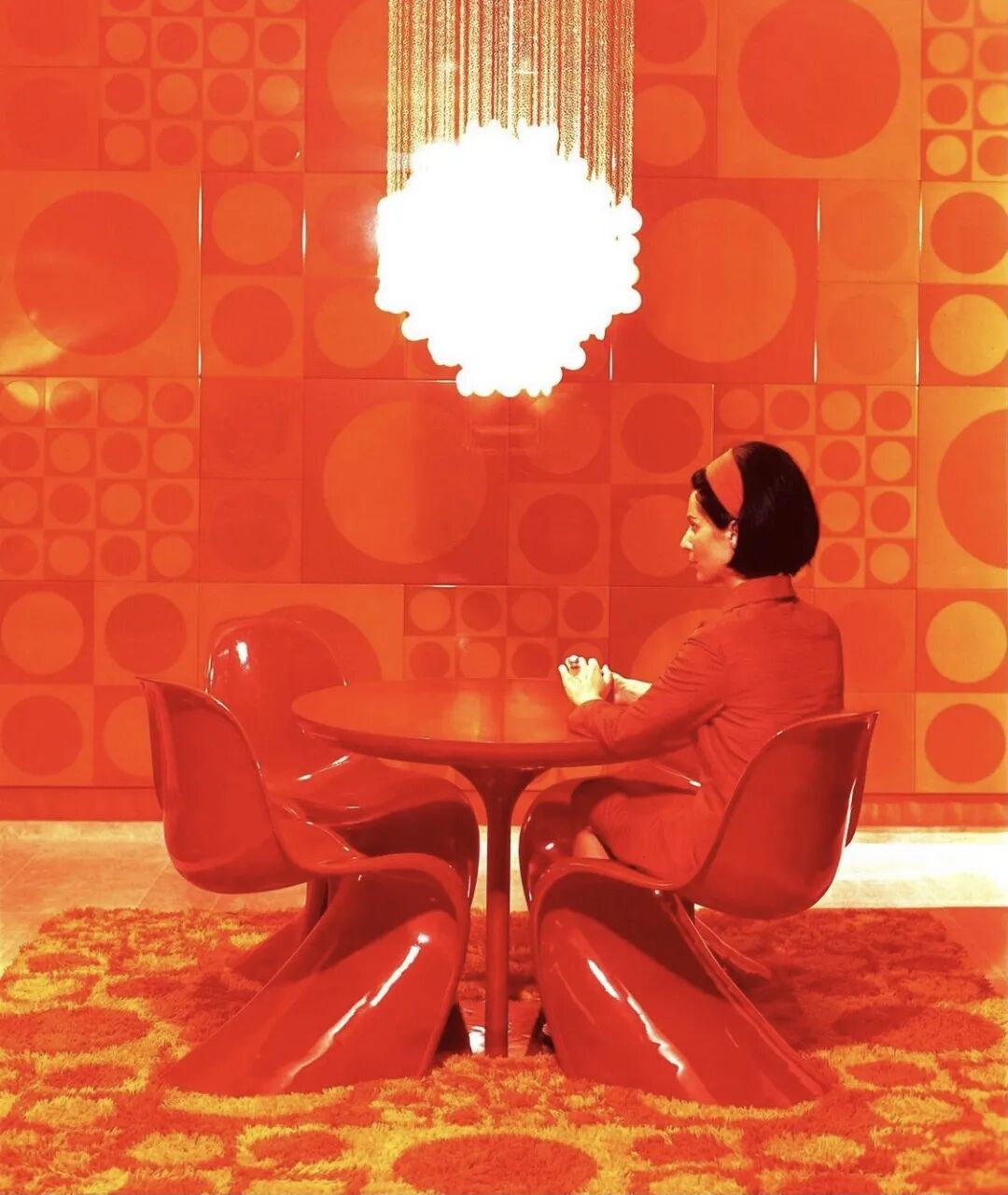 众所周知,北欧设计多以显而易见的克制与沉静,以及稳重的配色而闻名。因此在一众优秀的北欧设计师中,Verner Panton显得有些“格格不入”。艳丽色彩与创新材料是他在创作中不可或缺的两样武器,他认为“大多数人在枯燥沉闷,‘灰白色’般的约定俗成中度过一生,被世俗观念捆绑,抗拒运用鲜艳颜色。我想要借助新的方式,鼓励人们运用天马行空的想象力,将周遭的一切都变得更加鲜活”。他对强烈视觉风格的偏爱与追求极致的人生态度在日常生活中也可见一斑。