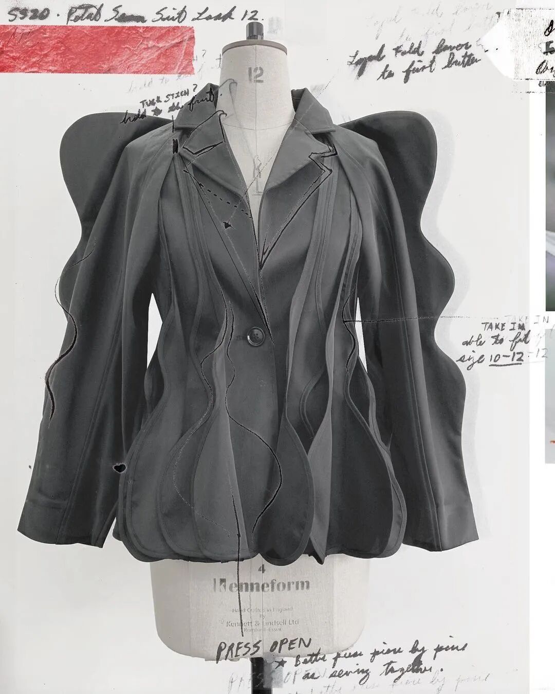 富有立体感的如雕塑一般的波浪,用面料模拟着花朵的形态,褶皱的堆叠和材质间的碰撞又让服装变化出更多的风格。