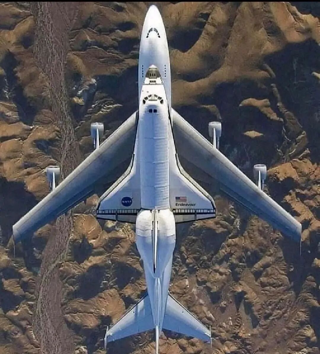 航天飞机上方的照片,由摄影师从倒置的大黄蜂战斗机上拍摄
