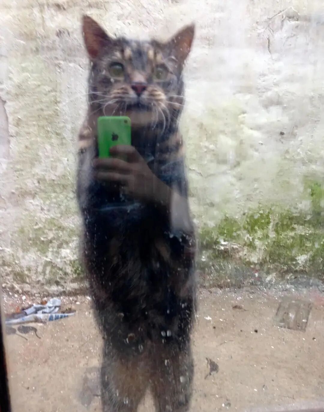 我拍了一张我们邻居的猫想进门的照片