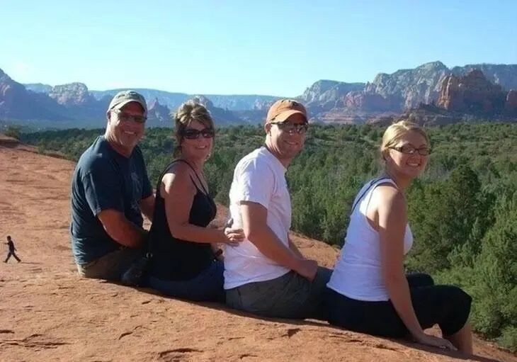 这不是一个巨人家族——他们只是在一座与山下的岩石完美融合的山上拍了张照片。