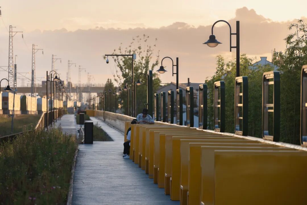 火车立面围栏与座椅的景观转译 © Holi河狸景观摄影