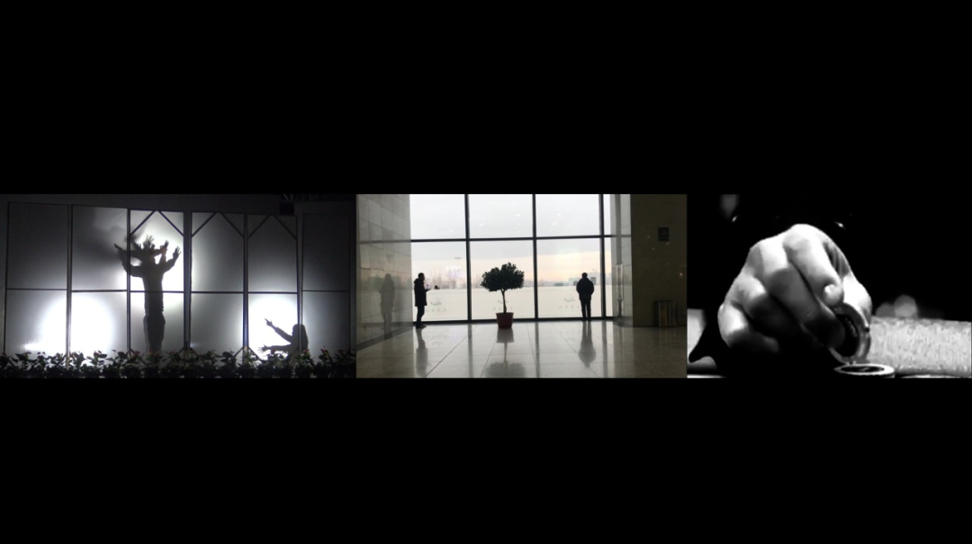 作品以三图并置的形式呈现,主体中间主体是拍摄于机场两个看似有关系的人,暗喻某种看不见的特殊关系,右边是截取电影有关莫斯密码传递的多种方式,左侧是通过行为表演再现信息传递复杂性,作品配乐改编自<碟中谍>主题曲,在当下信息爆炸的时代,多样化的传递方式传递着危险、焦虑、不安的情绪,在平静生活背后孕育着多方较量。