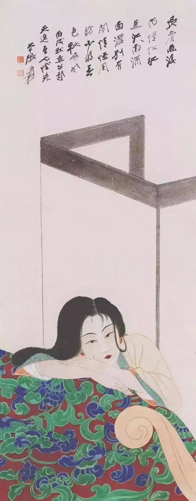 张大千,《仕女拥衾图》,1946,四川博物院藏