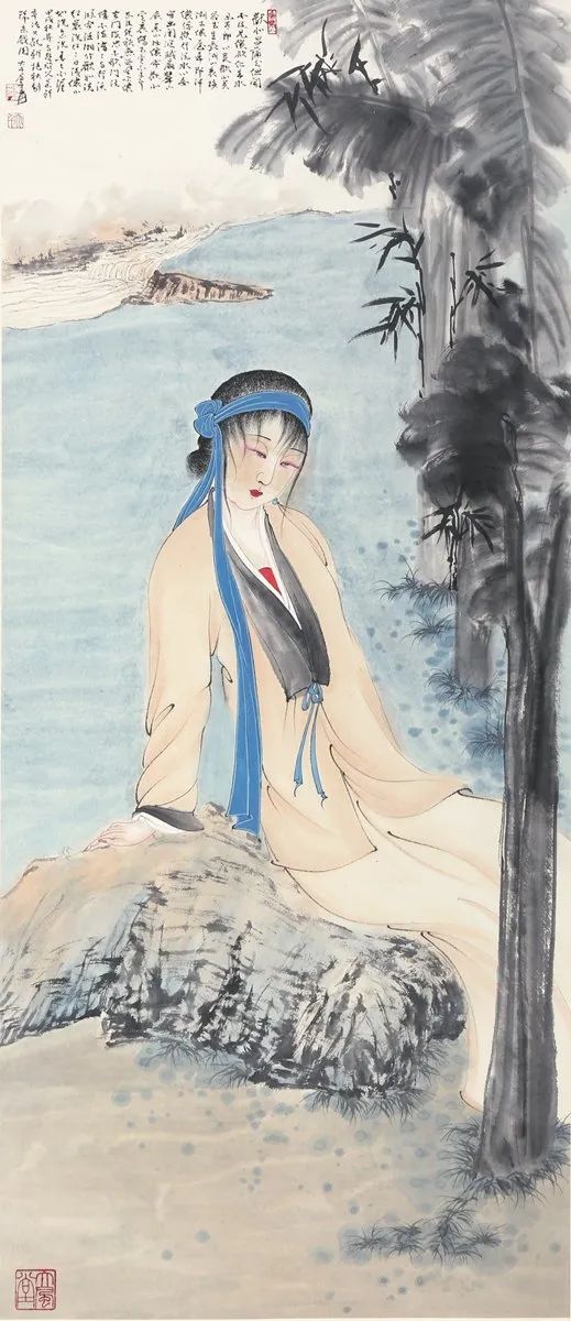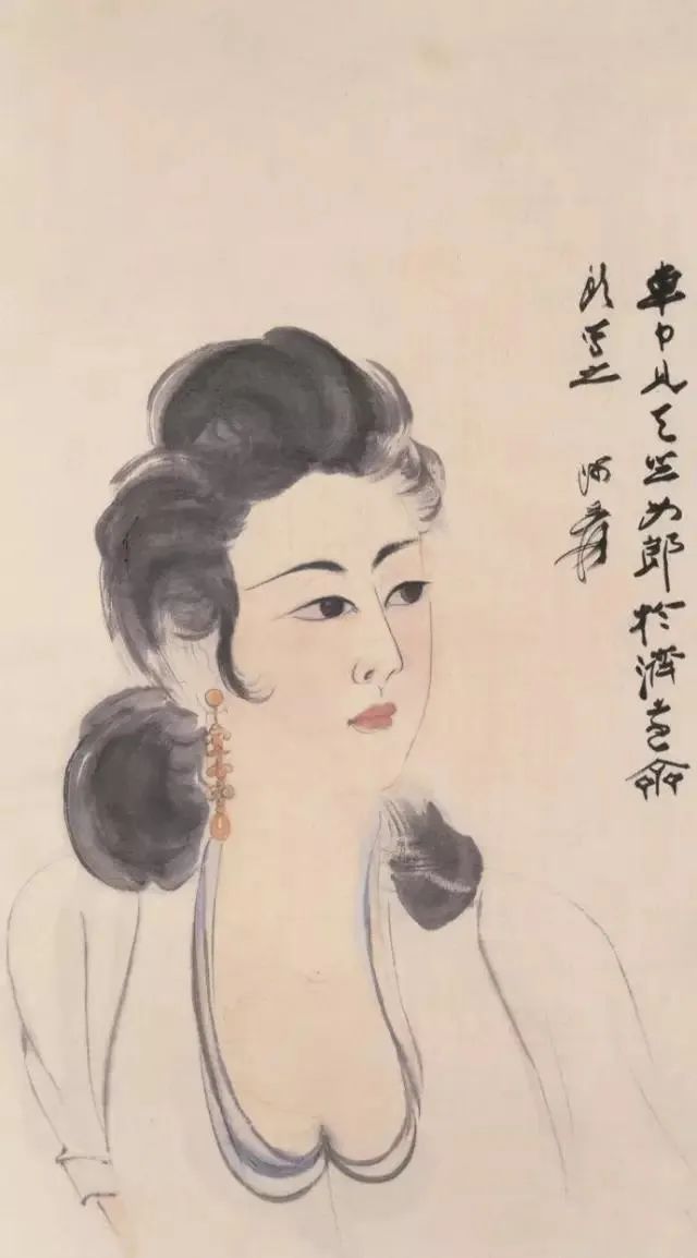 据说张大千在中学时,便经常在课堂上偷画美人作为消遣;到了30多岁,即已遍习唐寅、仇英、陈洪绶、改琦、顾洛、任伯年等明、清诸家的仕女画风。
