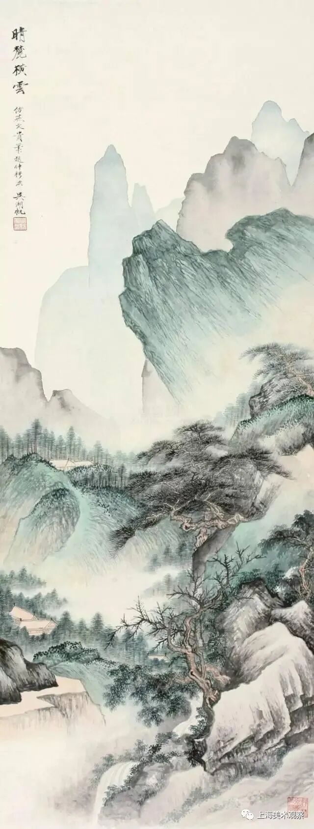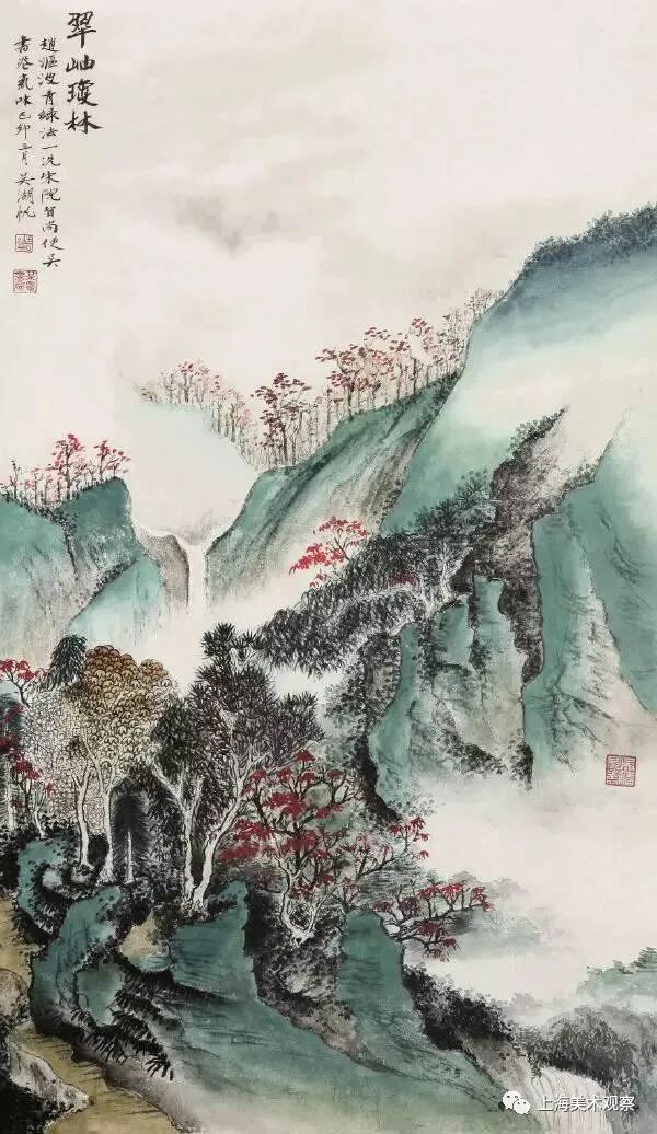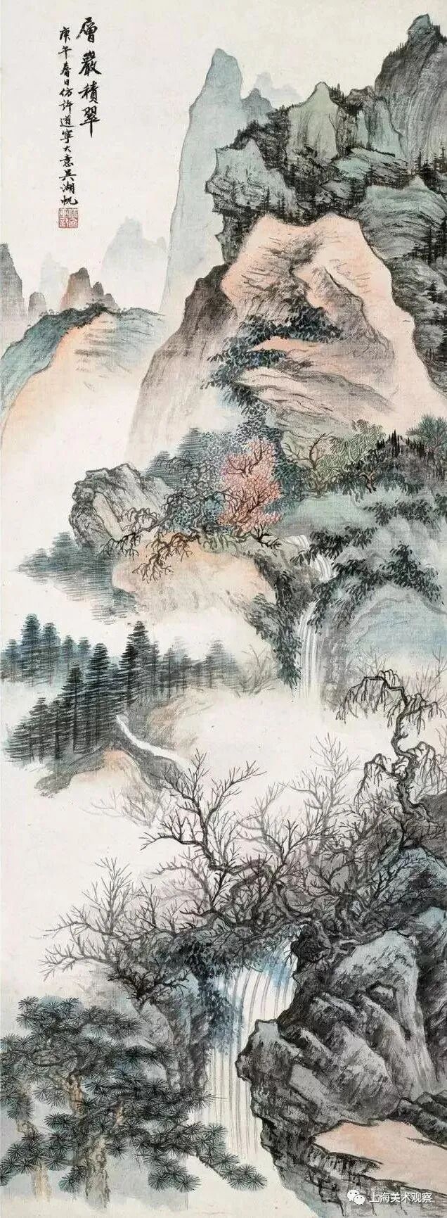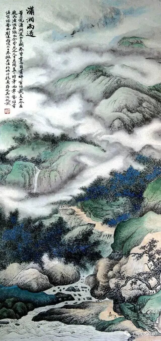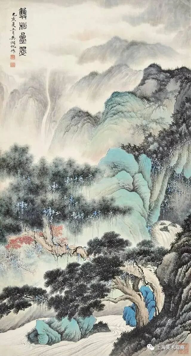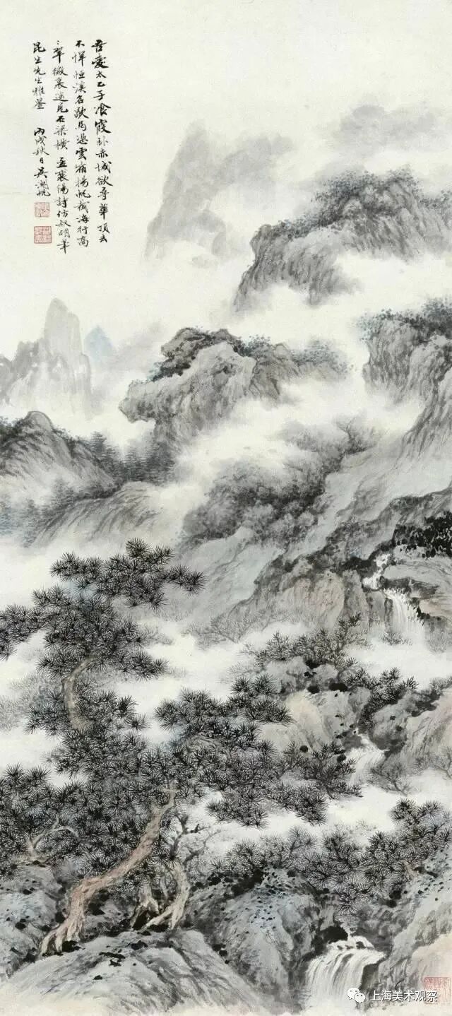 他擅画山水,亦擅绘花卉,兼工书法。其山水以雅腴灵秀、缜丽清逸的复合画风独树一帜,尤以融水墨烘染与青绿设色于一体并多烟云者最具代表性。张大千曾将他誉为“民国画坛第一人”。