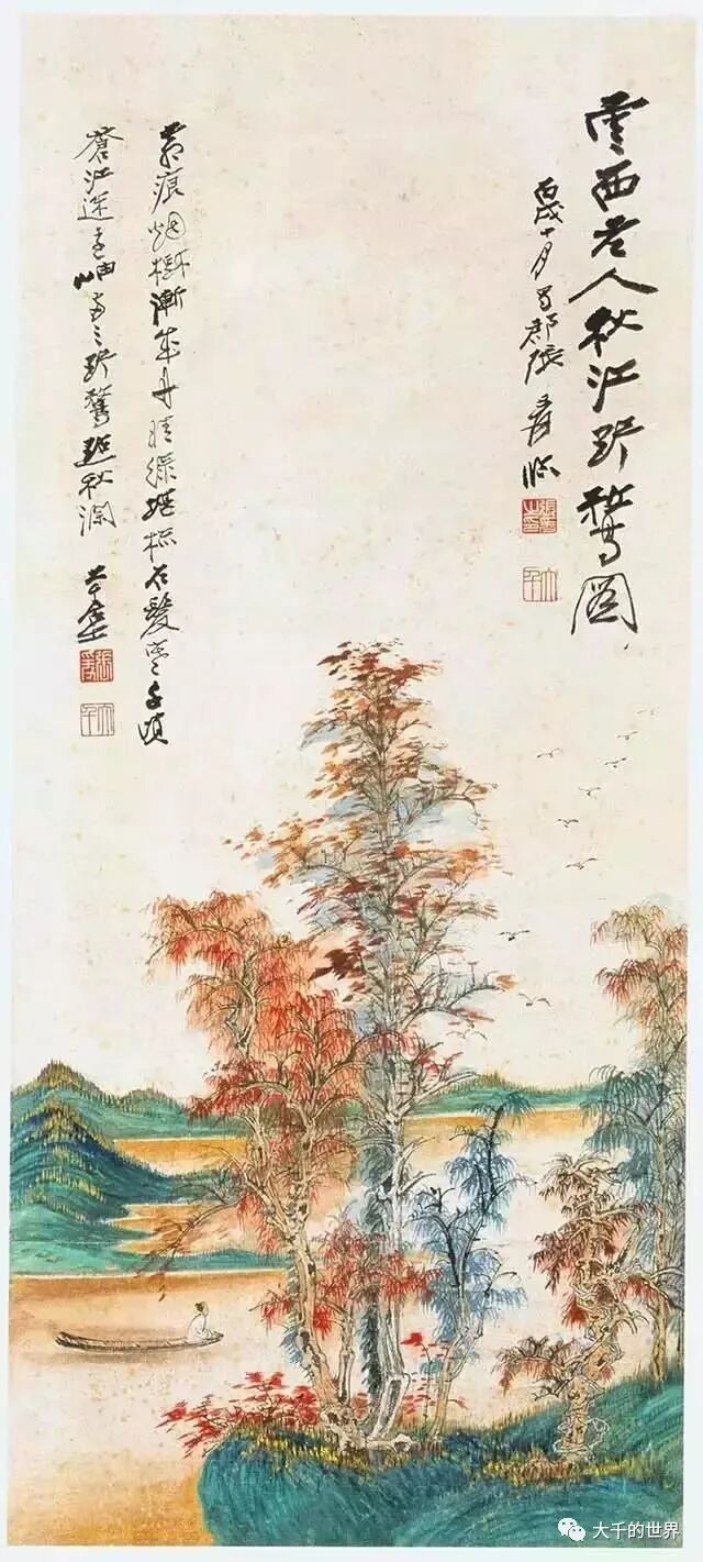 我想最高的时候,用油画的方法一样可以画中国画,那么用毛笔用胶水、墨水一样的可以画西洋画,所以我看到外国的画我们虽然没研究…我觉得他们出发点用意用心也是一样的,在我一个人的想法呐,不必要严格去分东西之分,到了最高的境界是一样的。——张大千