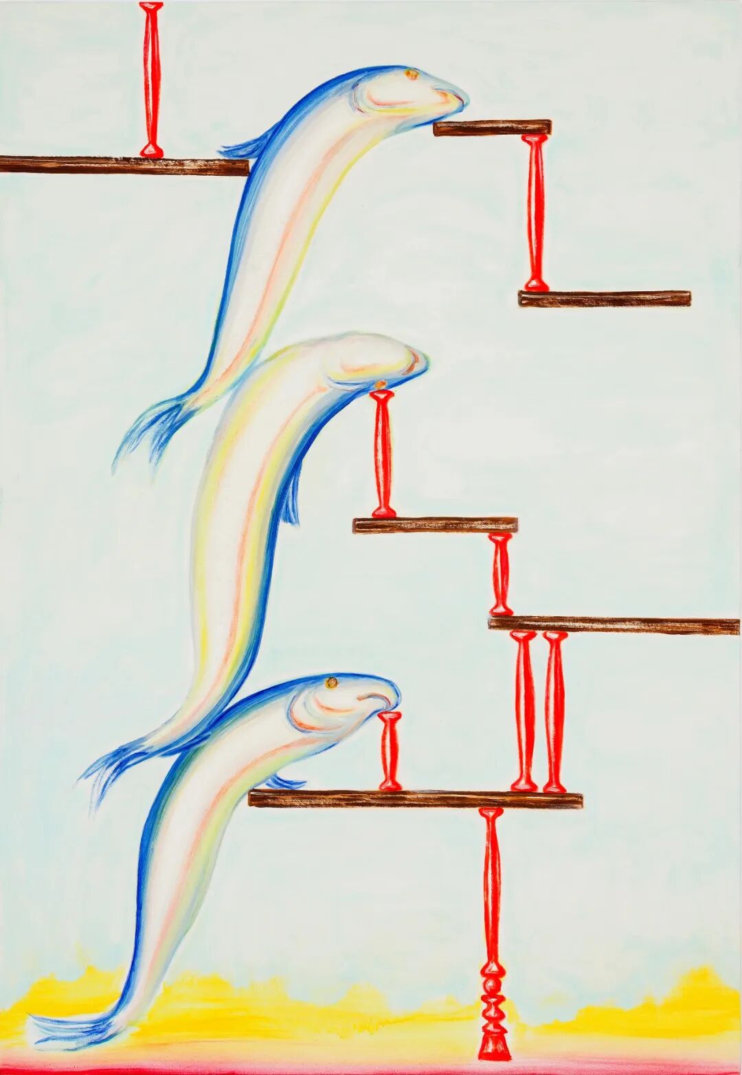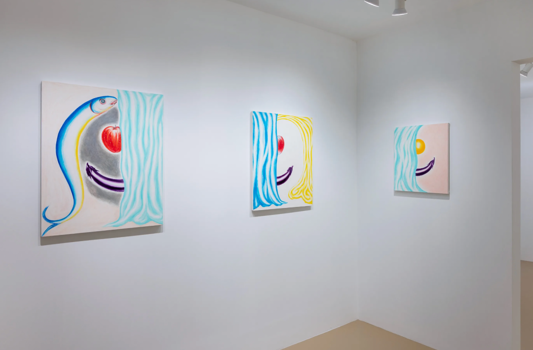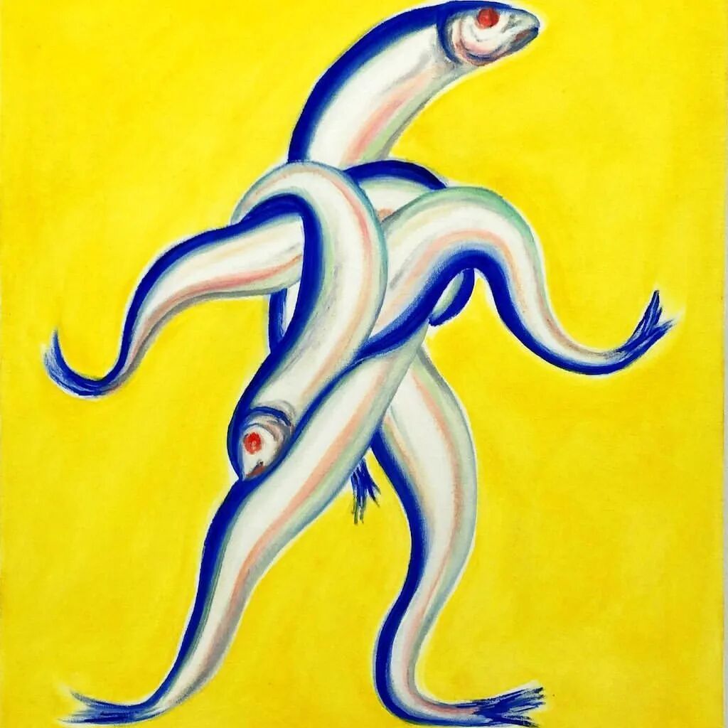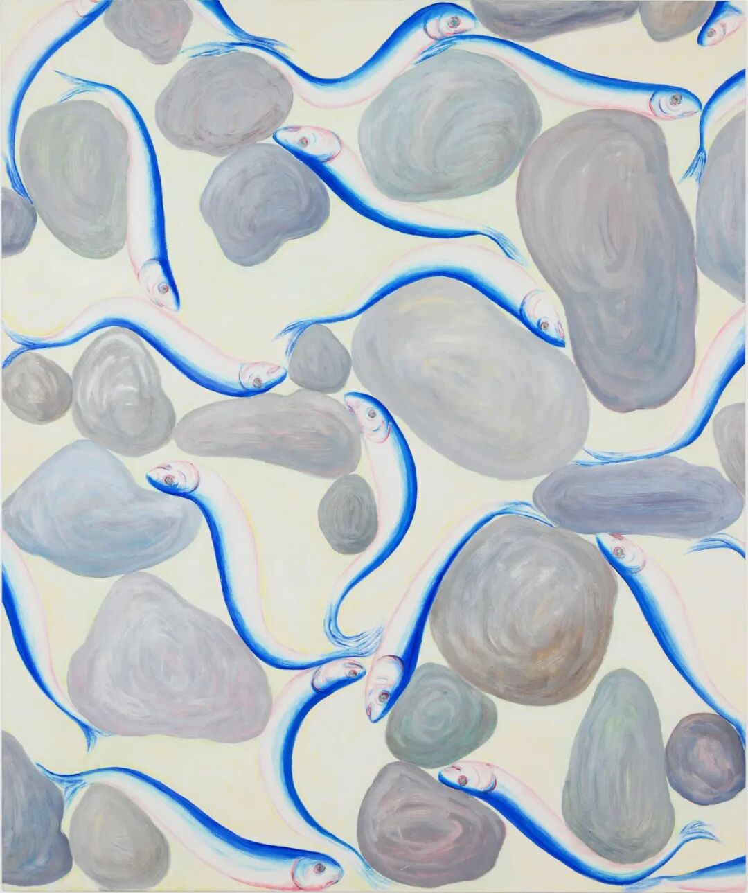 画家受日本浮世绘、漫画和各种西方绘画传统的影响,作品以反复出现的水果、蔬菜、鱼为特色。他对堆叠和图案中物体的编排呈现出一种临时的、生动的外观,就好像它们可以随意散开或重新排列一样。