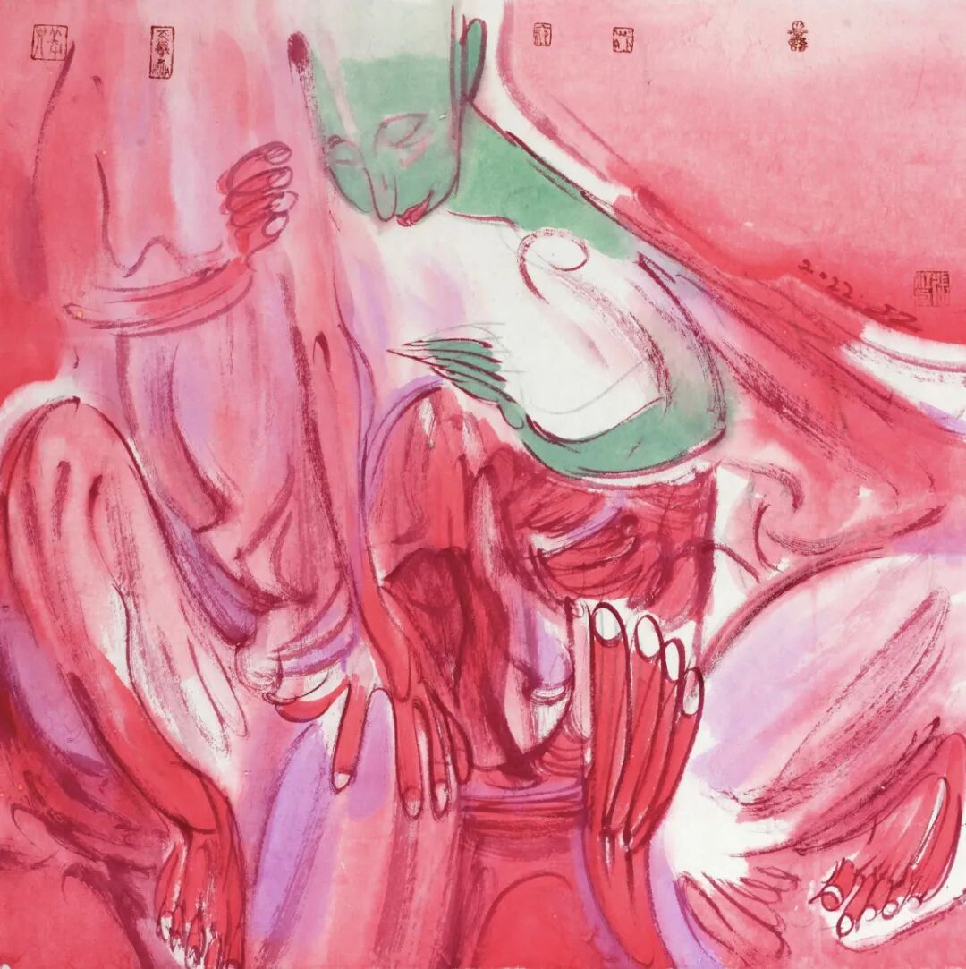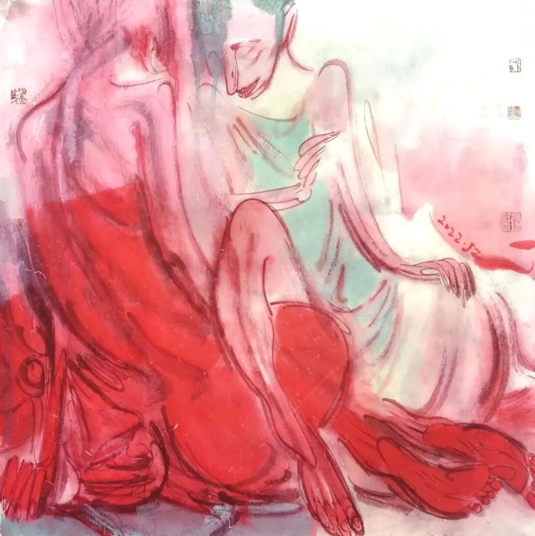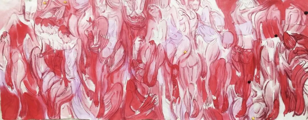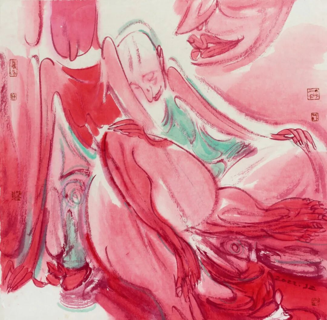 这批画的主题表现似乎已无关生死,用的还都是红颜色,红色是有文化属性的。在中国,红色是与喜庆相关联的。这种变化当然和心态有关,随着年龄的增长,看淡了许多,也放下了许多。我身边的年轻人说,我越来越“佛系”了,不再那么较真了。我也不知道这种转变是好是坏,顺其自然吧,也许有那么一天,我连画都不想画了。