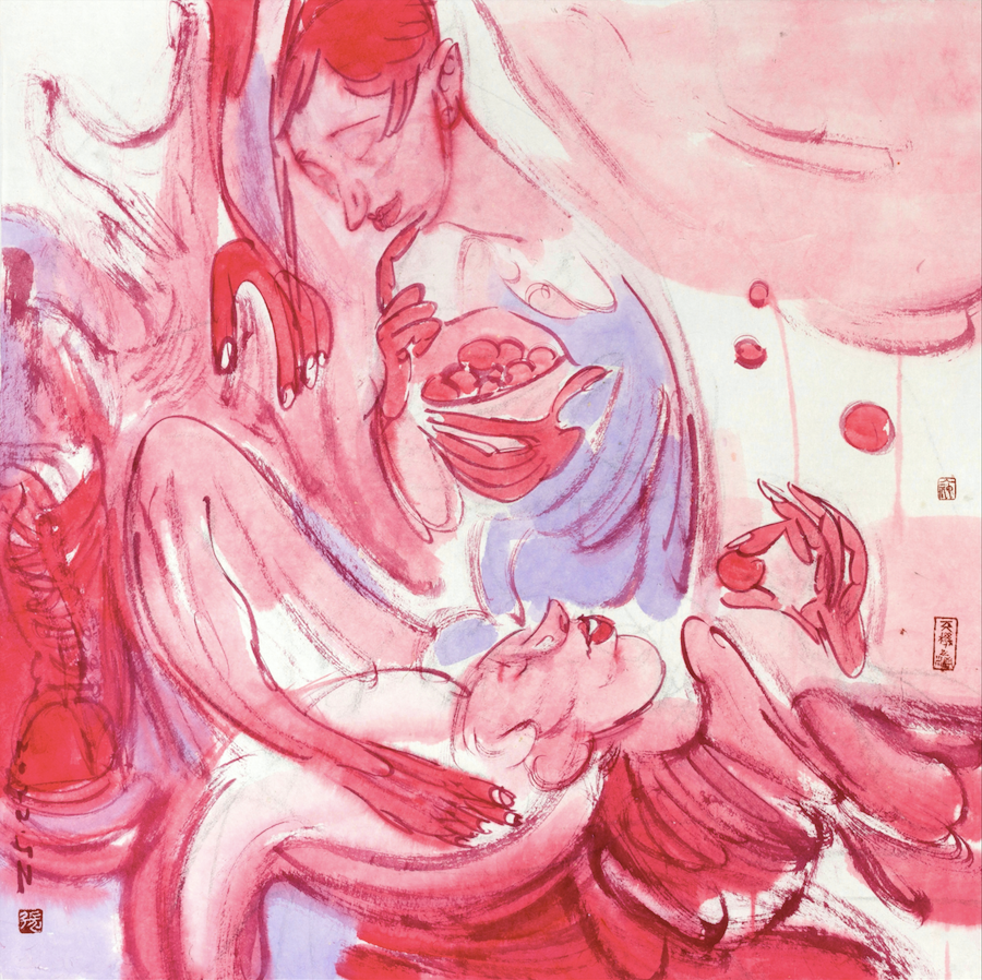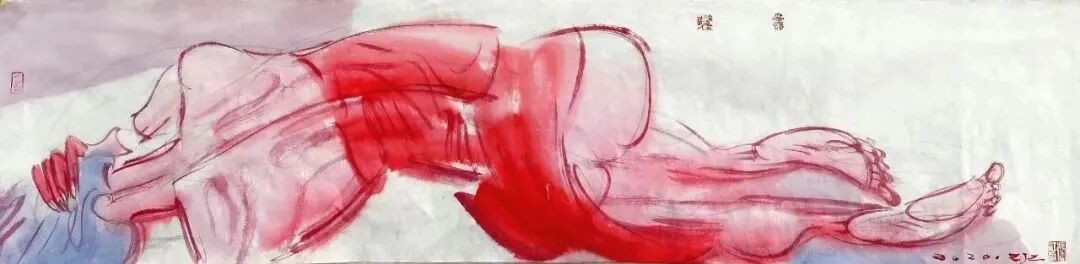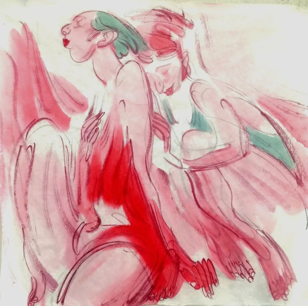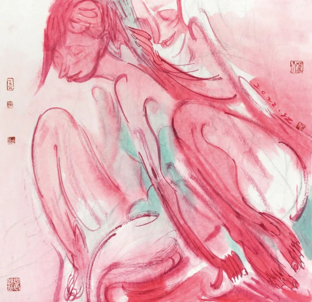 这批画的主题表现似乎已无关生死,用的还都是红颜色,红色是有文化属性的。在中国,红色是与喜庆相关联的。这种变化当然和心态有关,随着年龄的增长,看淡了许多,也放下了许多。我身边的年轻人说,我越来越“佛系”了,不再那么较真了。我也不知道这种转变是好是坏,顺其自然吧,也许有那么一天,我连画都不想画了。