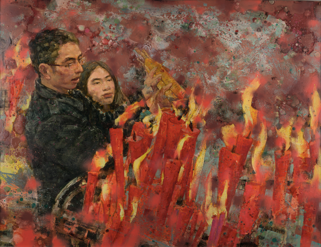 重叠,是我对世界的认知结果,也是我对世界的观察方式。艺术语言服务于艺术家的思想,服务于作品的表现。视觉艺术如何呈现这个重叠的世界?艺术语言如何淬炼才能更好地表现这个重叠的世界?多年以来,我一直在探索。如果观者细看每一个画面的肌理与笔触,在画布上可以看到层层色料也是累积在一起的:冷与暖,明与暗,互补与近似,厚质与轻薄,它们层层叠叠但并不掩盖消亡,它们彼此独立又共同存在,如同这个重叠的世界。