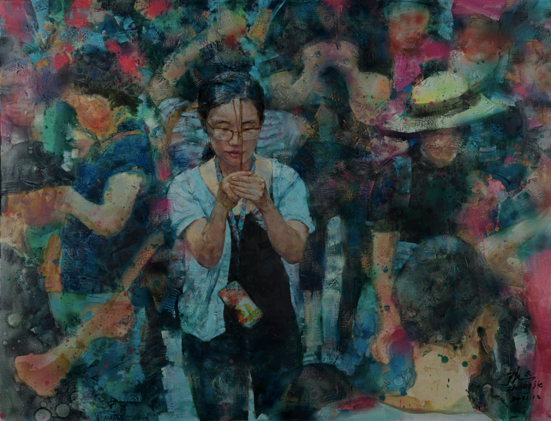 这是一段个人的阐释,不一定符合张杰创作的思路。绘画一旦完成,其意义的解释已经不受作者约束,观者可以参与进来。无论怎样,观看之道总是由人的意识引导,而这段意识流向所形成的人文叙事,也许可以打开另一扇阅读的窗口。张杰绘画的意义世界是敞开的,所涉及的题材与主题也十分宽泛,解释总会遇到困难。只要打开就会有新的遮蔽,任何一种预设都有局限。