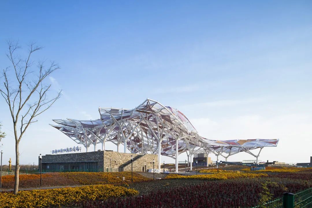 张拉膜结构有浓重的时代特征,在过去二十年的快速发展中,很多城市的大型市政项目,甚至地标建筑、广场,都会看到这种独特的材料