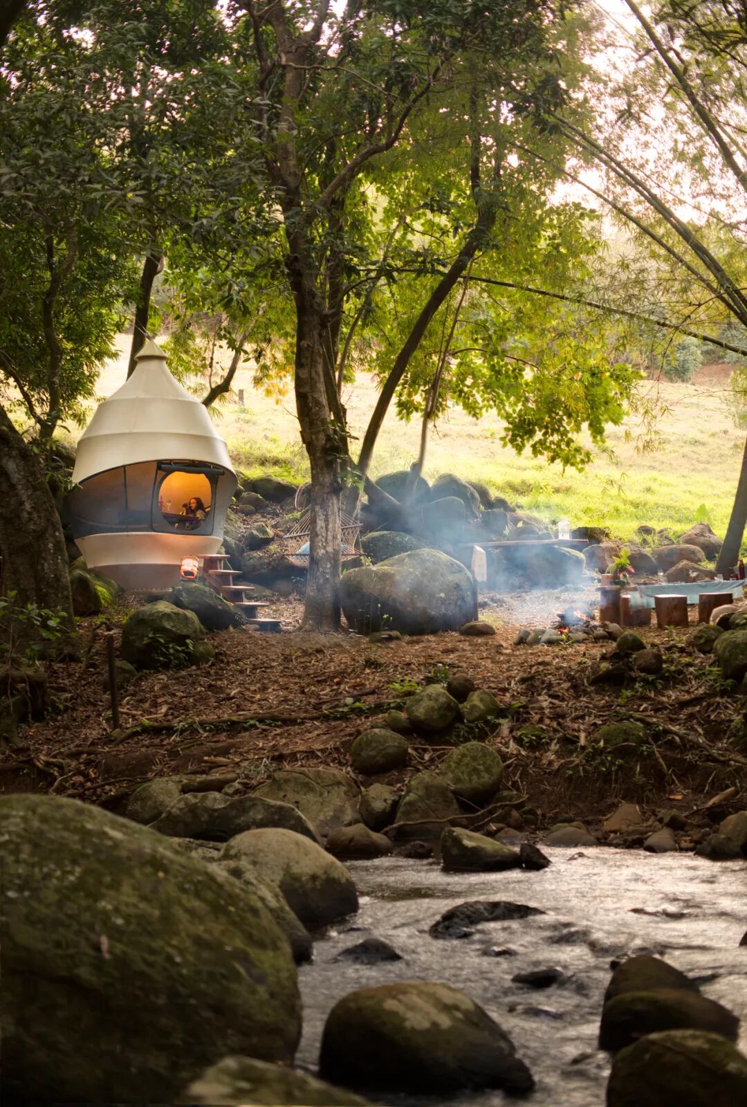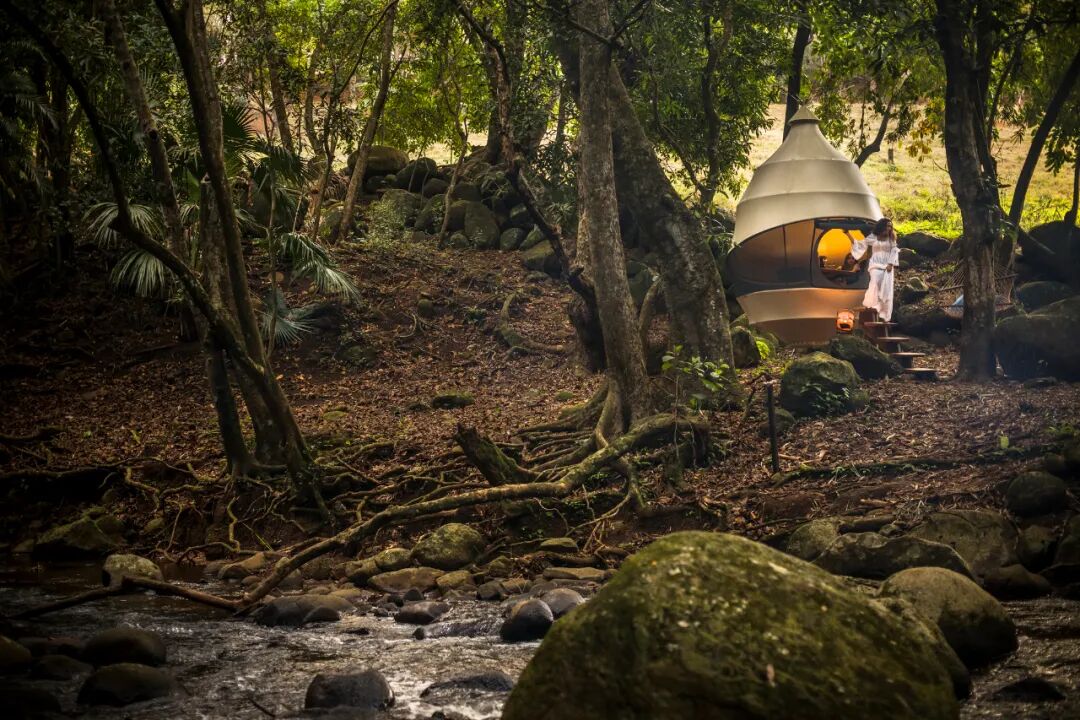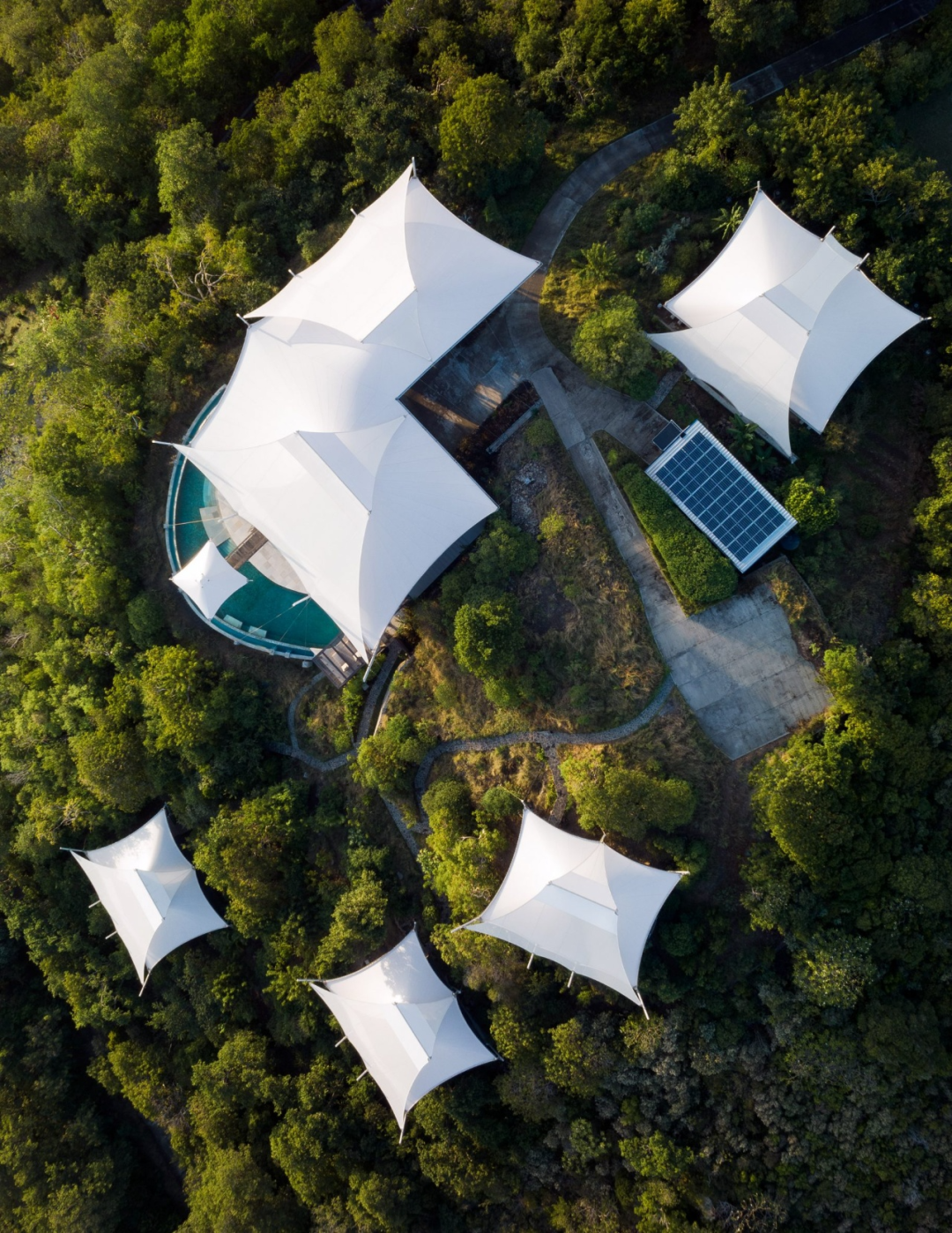项目由7个相互连接的舱体和张拉结构组成,同时设有一个露台,可将红树林和远处山脉的美景尽收眼底。