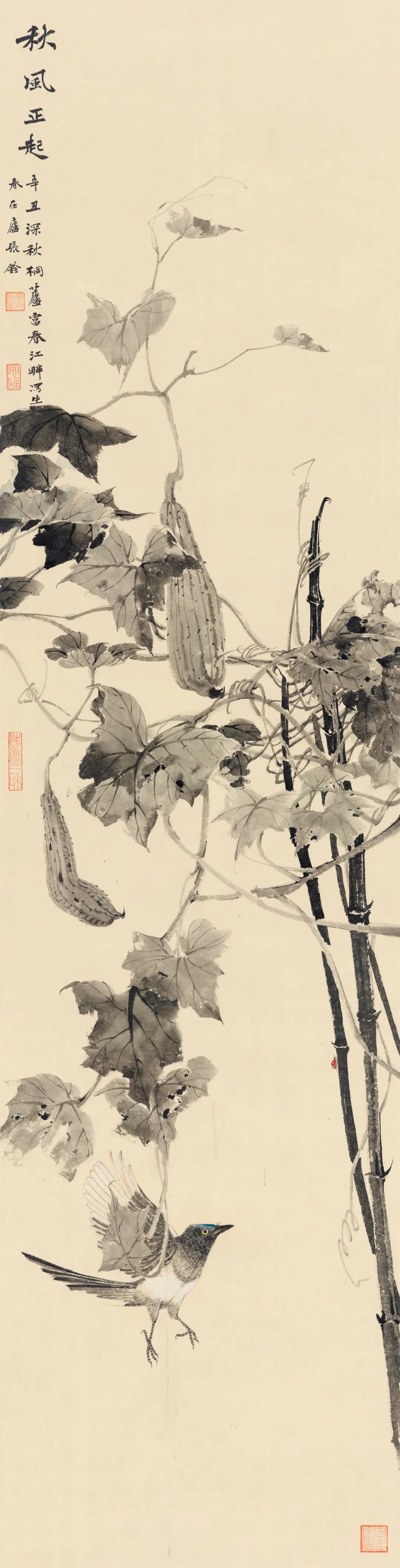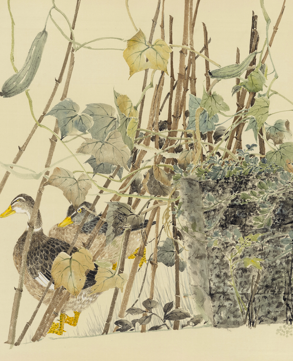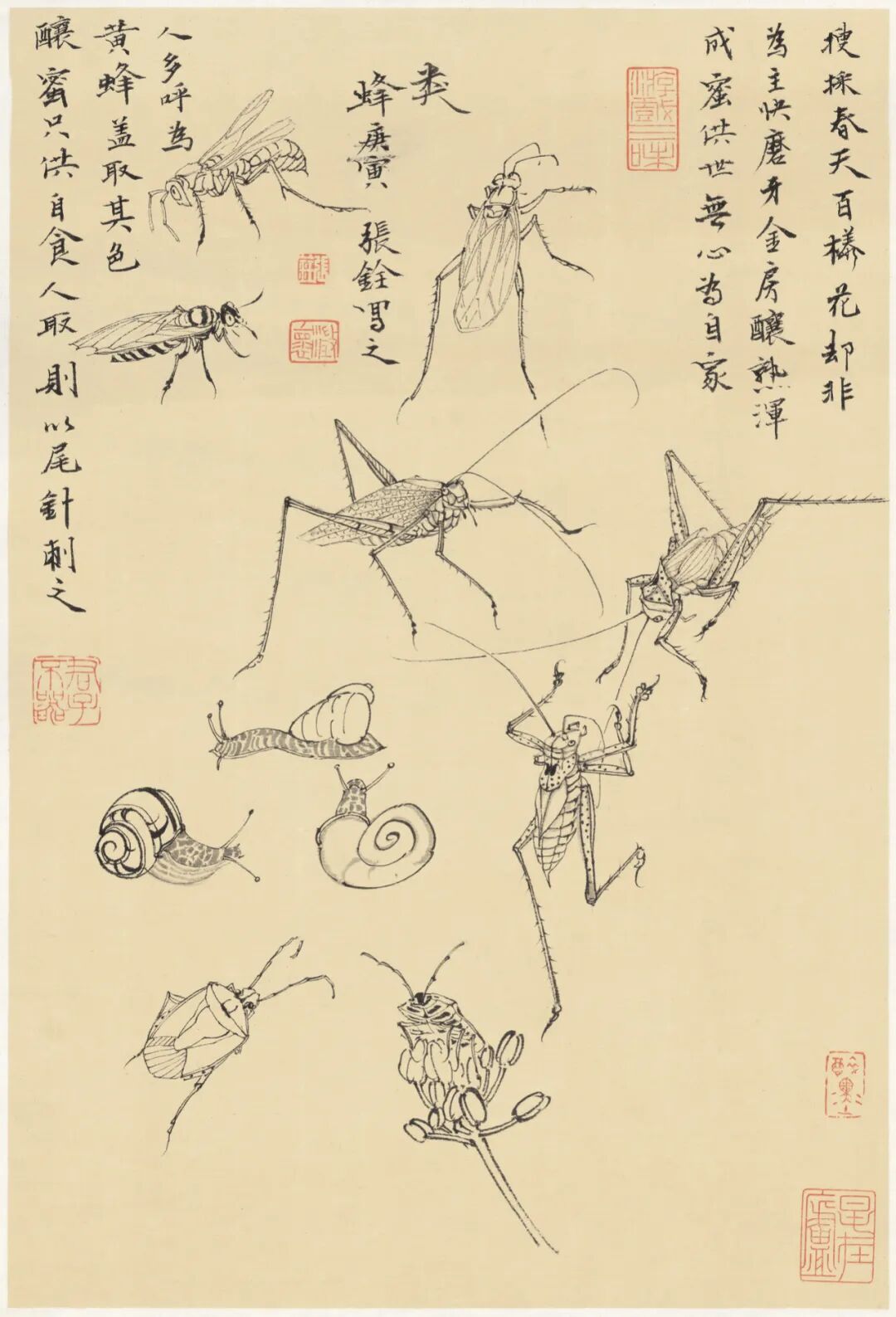 张铨的状态一向很好,左手执古图文,右手提生花妙笔,眼不离荤素长物,耳常听花开有声,既然进路上触目皆好,何必恋他处更佳,日日朝华夕拾,又何虑画中无物。张铨笃擅写生之法,故使常年路边倚马,花下设案,志在保鲜画中生机。凡形神已足即止,不事工谨矫饰,并引书家隶气入之,疏朗其画意。心旌如此,应算是读懂中国美术史这部大书了。且不提人物山水,就花鸟鱼虫一门,哪个大家不深受此法贴补,方有大成。今之学院花鸟写生从白描入手,然后步以勾填设色诸法。对此,张铨早已熟稔,但他最为心许的还是鲜活直取的没骨写生,即无困于墨象勾染的杂色状物,抑或是色墨交融骨肉翻豁的一笔了断。于此,是色是墨反不重要,所重乃在得天人妙合的那点神通。以我之见闻,得此高难技术链,便如花鸟家得降龙十八掌,故为圈内不治之痒。画史能辩,则无翼而飞,不辩则愈工愈远,虽工无益,古贤每作此类语,后学不可轻忽。